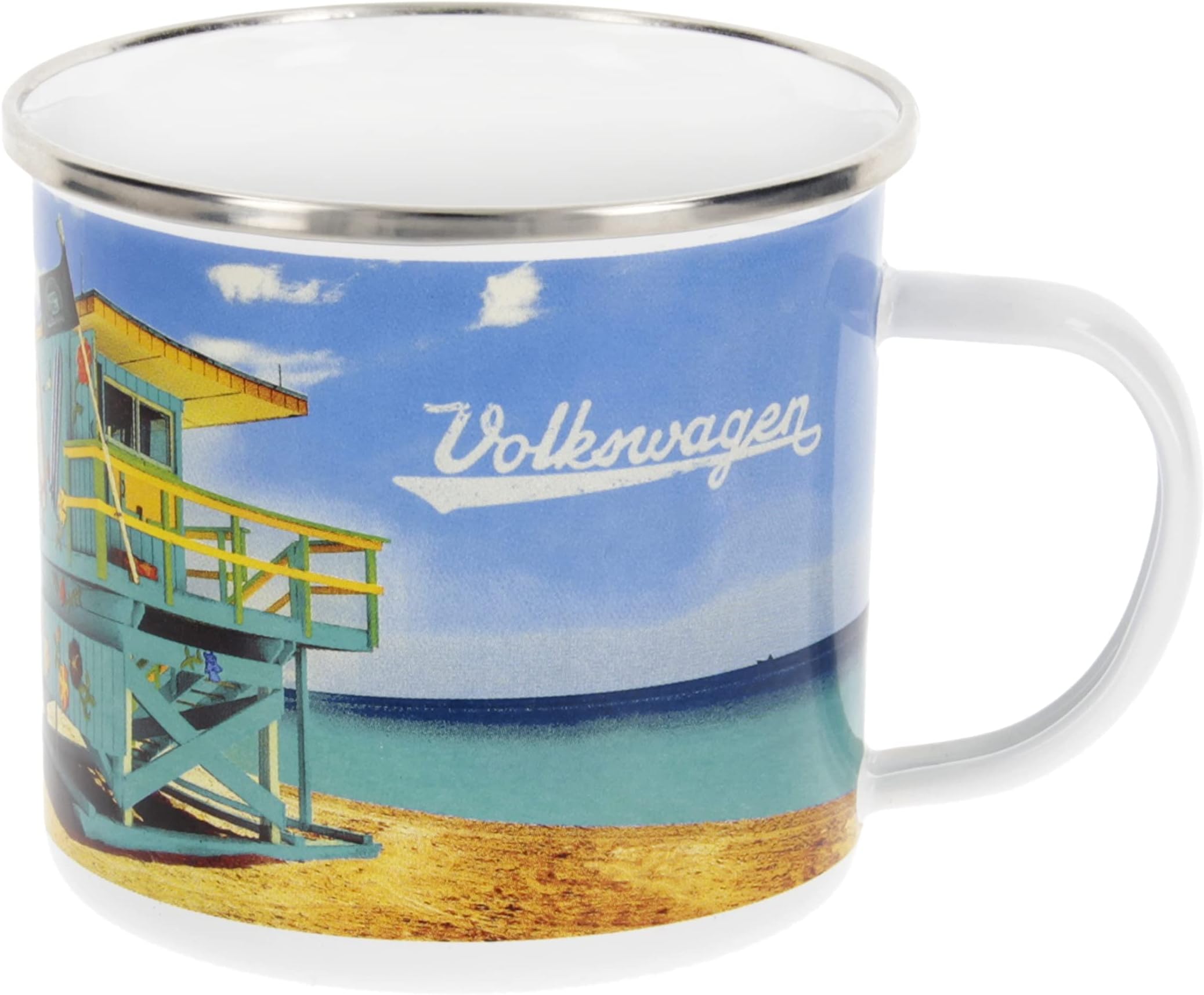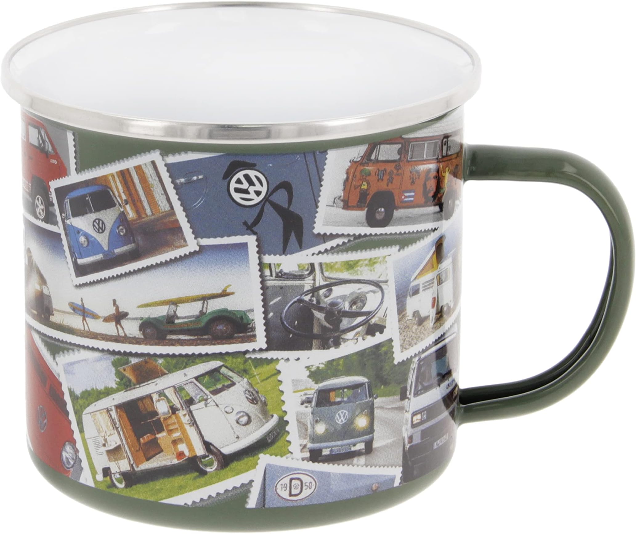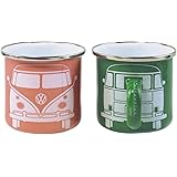 Bulli-Feeling für deine Küche! Dieses niedliche 2er-Set mit VW T1 Bulli Design bringt retro-chic direkt auf deinen Tisch. Jede Tasse fasst 350 ml und zeigt die charakteristische Frontansicht des Kult-Bullis. Die Emaille-Beschichtung macht sie robust und pflegeleicht - einfach per Hand mit Spülmittel reinigen (nicht spülmaschinengeeignet). Perfekt für Camping-Ausflüge, Picknicks oder einfach für den täglichen Kaffee zu Hause. Ob heiße Getränke, kalte Cocktails oder sogar Suppen - diese Tassen machen alles mit. Das Set kommt im Geschenkkarton und ist offiziell von Volkswagen lizenziert. Maße: 8,5 cm Durchmesser, 8 cm hoch. Ein Must-Have für jeden VW-Fan und alle, die das gute alte Retro-Feeling lieben!