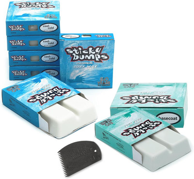 Richtig Halt auf dem Board! Dieses Sticky Bumps Surf Wax Bundle hat alles, was du für perfekten Grip brauchst. Enthält 6 Riegel Cool/Cold Wax für Wassertemperaturen bis 20,6°C, plus 2 Basecoat-Riegel für die Grundierung. Der mitgelieferte Wachskamm mit abgeschrägter Kante macht das Auftragen und Verteilen zum Kinderspiel. Mit dem ikonischen Blaubeerduft, den jeder Surfer liebt. Langanhaltend und einfach aufzutragen - formuliert für maximale Haftung auch bei wilden Wellen. komplett ungiftig und biologisch abbaubar, hergestellt in den USA. Ob Anfänger oder Profi - mit diesem Komplett-Set bist du für jede Session bestens ausgerüstet. Hol dir den legendären Sticky Bumps-Grip und konzentrier dich aufs Wellenreiten, nicht aufs Rutschen!