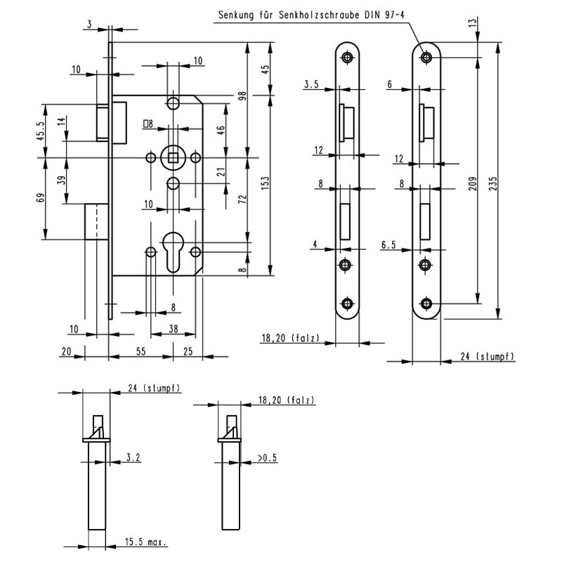 Einsteckschloss Für Zimmertür - Buntbart Links 78mm Entfernung Mit 24mm Stulp