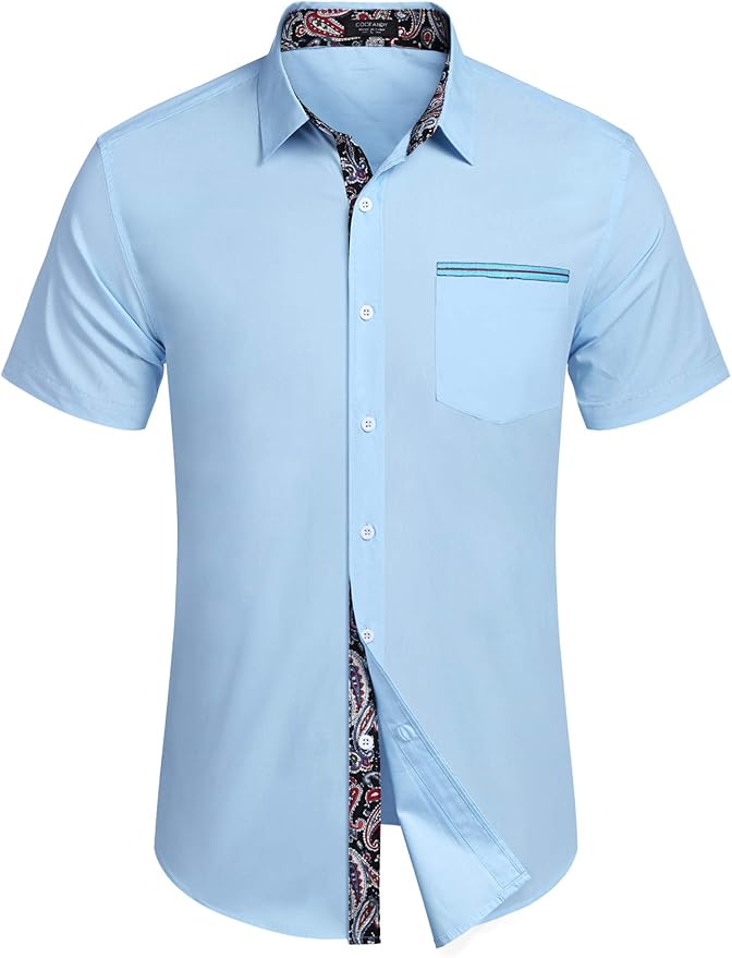 Hey stylische Herren! Dieses COOFANDY Kurzarmhemd ist der Allrounder für den Sommer! Aus hochwertigem Polyester mit speziellem Fleckenschutz - wasserabweisend und schützt vor Ölflecken und Verschmutzungen. Im klassischen Regular Fit geschnitten mit praktischer Brusttasche für deine Essentials. Der leichte, atmungsaktive Stoff sorgt für angenehmen Tragekomfort auch an heißen Tagen. Perfekt fürs Büro als Business Casual Hemd, für Freizeitaktivitäten oder Partys. Einfach mit Jeans, Shorts oder Freizeithosen kombinieren - mit Sonnenbrille und Sandalen hast du den perfekten Sommerlook! Maschinenwaschbar bei niedriger Temperatur, am besten an der Luft trocknen lassen um Form und Farbe zu erhalten. Dein neues Lieblingshemd für jeden Anlass!