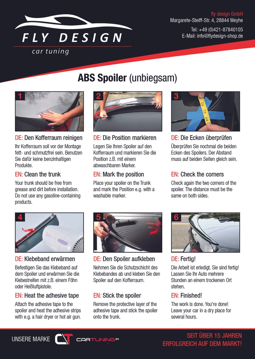 Mach deine C-Klasse noch sportlicher! Dieser Heckspoiler im A-Style Design passt perfekt zum Mercedes C205 und kommt bereits lackiert in Obsidianschwarz (Farbe 197). Aus stabilem ABS-Kunststoff und mit 3M Klebeband für einfache Montage ohne Bohren. Verbessert die Aerodynamik und sieht einfach hammer aus. Einfach reinigen, kleben, 48 Stunden warten und sich über den neuen Look freuen. Waschanlagenfest - versprochen!