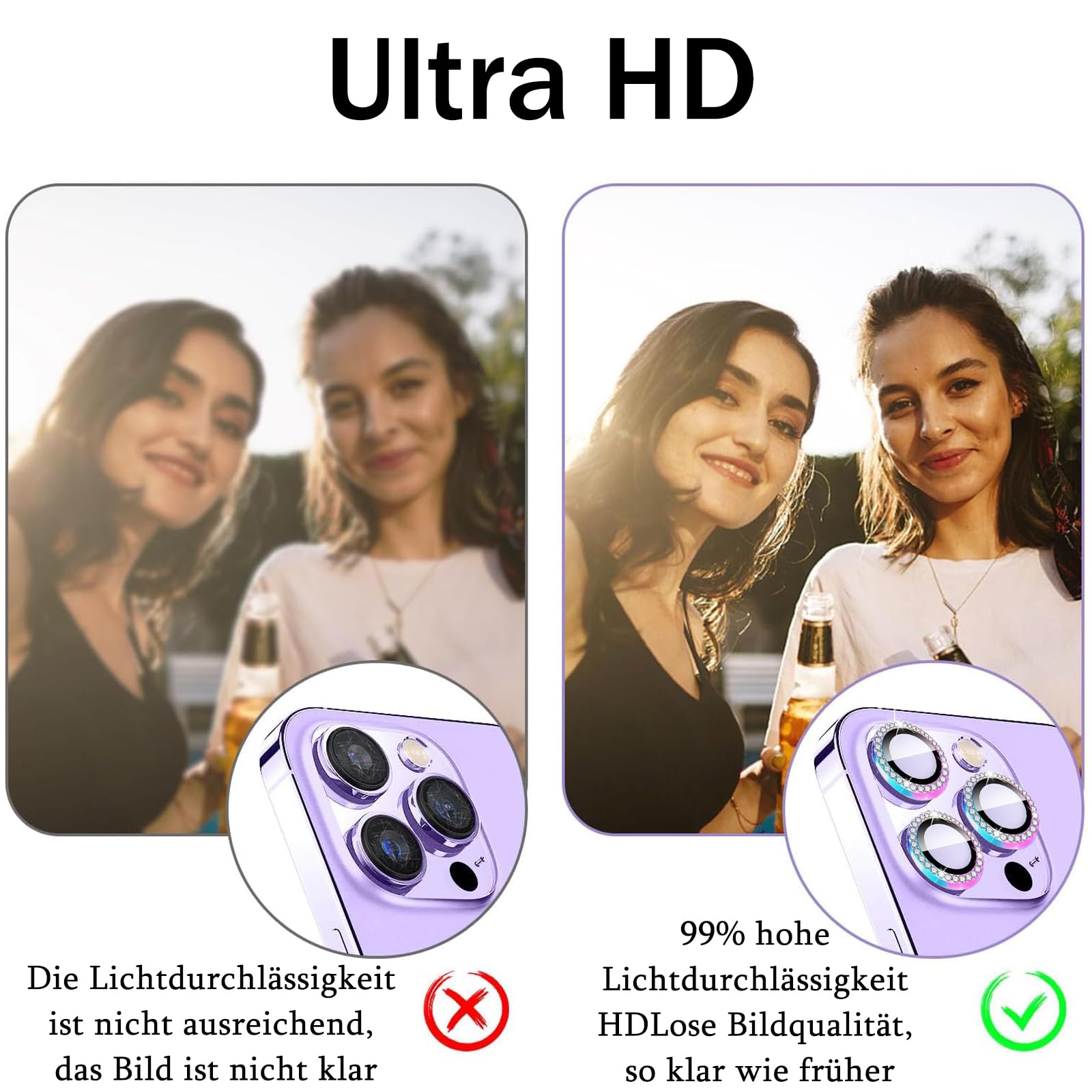 Schütze deine teure iPhone-Kamera! Dieser Kameraschutz von CALLYSONIC bewahrt deine Linsen vor Kratzern, Staub und Stößen. Und das Beste: Er beeinträchtigt die Foto-Qualität überhaupt nicht! 📱\n\nKompatibilität:\n• iPhone 16 Pro (6,3 Zoll)\n• iPhone 16 Pro Max (6,9 Zoll)\n• Achtung: Passt nicht auf iPhone 16/16 Plus!\n\nTechnische Features:\n• 9H gehärtetes Glas - ultra kratzfest\n• Metallring - zusätzlicher Schutz\n• AR-Beschichtung - 99,9% Lichtdurchlässigkeit\n• Einteiliges Design - deckt alle Linsen ab\n• Glitzer-Effekt - sieht mega stylisch aus\n\nEinfache Installation:\n1. Schutzfolie abziehen\n2. Auf Kamera ausrichten\n3. Sanft andrücken\n4. Automatische Haftung - fertig!\n\nWarum dieser Schutz so gut ist:\n• Keine Reflexionen - perfekte Fotos garantiert\n• Präzise Passform - sitzt wie angegossen\n• Keine Blenden - alles bleibt sichtbar\n• Einfache Reinigung - kein Staubfänger\n• Glitzer-Option - personalisierbar\n\nDeine Kamera bleibt geschützt, aber deine Fotos werden genauso scharf wie ohne Schutz. Die AR-Beschichtung verhindert lästige Reflexionen und sorgt für natürliche Farben. 🔒\n\nTipp: Perfekt für alle, die ihr iPhone ohne Hülle nutzen oder zusätzlichen Schutz wollen. Deine Investition in das teure Smartphone ist es wert!