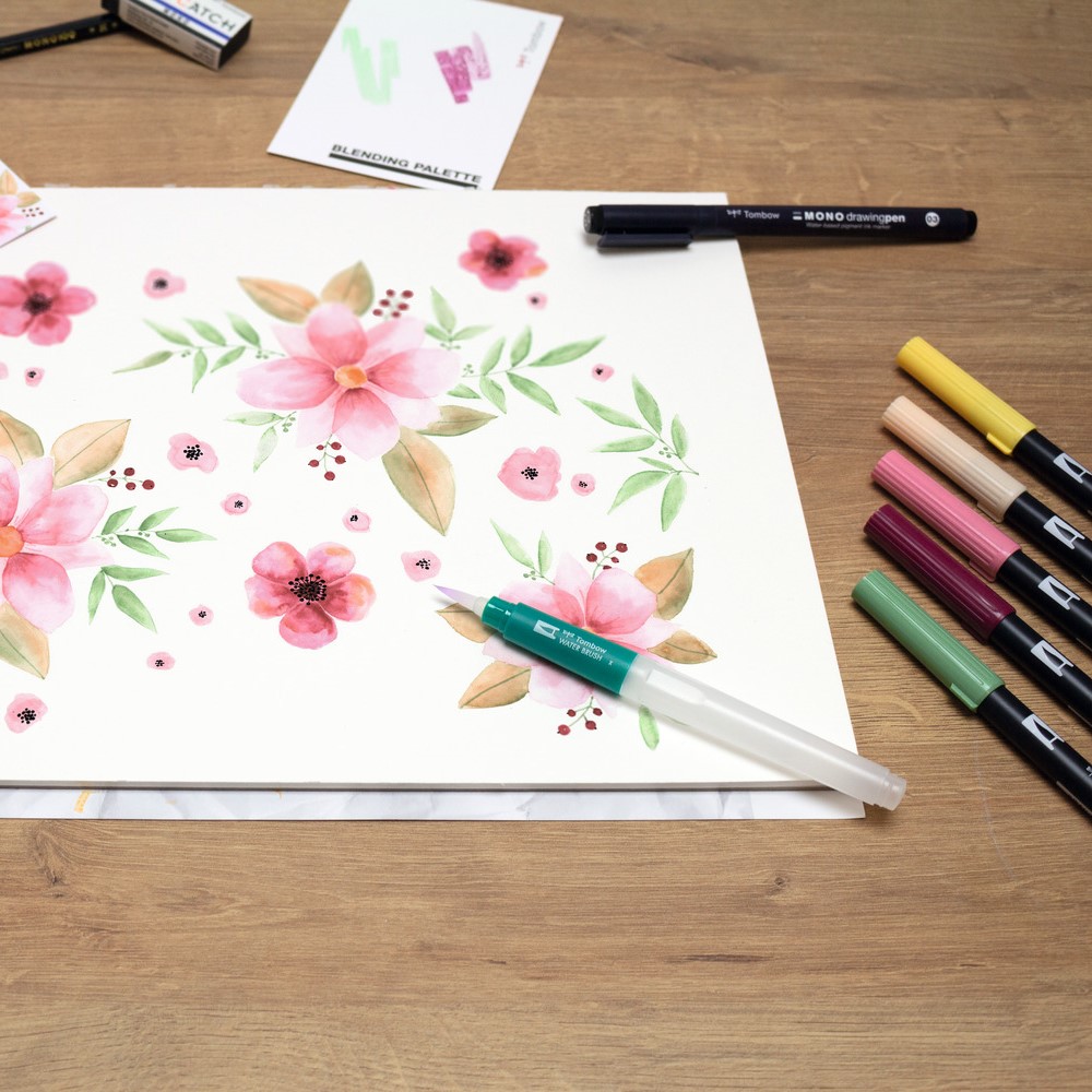 Malen war noch nie so entspannend! Dieses Tombow Watercoloring Set hat alles, was du für tolle Aquarell-Kunst brauchst: 4 ABT Dual Brush Pens mit zwei Spitzen, einen nachfüllbaren Wassertankpinsel, eine Mischpalette und zwei faltbare Leinwände aus Recycling-Karton (21x14,8 cm). Die Stifte sind wasserbasiert - du kannst die Farben super miteinander vermischen und wunderschöne Verläufe zaubern. Der Pinsel hat einen Wassertank, damit du nicht ständig nach Wasser tauchen musst. Einfach die Leinwand aufklappen, mit den Stiften malen, mit Wasser vermischen - und trocknen lassen. Danach zusammenklappen und aufhängen! Perfekt für Anfänger und Fortgeschrittene. Ob zum Entspannen nach der Arbeit oder als kreatives Hobby - mit diesem Set entstehen garantiert Kunstwerke. Einfach auspacken und loslegen!