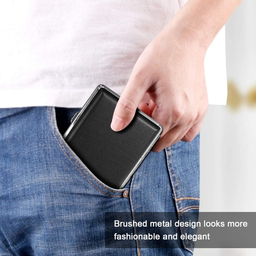 Stylisches Accessoire für unterwegs! Das CHAMP Zigarettenetui SHINY überzeugt mit glamouröser Glitzer-Optik und robuster Qualität. Mit stabilem Metallkern und glänzender Kunstleder-Oberfläche schützt es deine Zigaretten zuverlässig vor Quetschungen und Feuchtigkeit. Platz für ca. 12-14 Standardzigaretten - der praktische Gummihalter innen sorgt für sicheren Halt. Mit sicherem Klickverschluss, der auch in der Tasche nicht versehentlich aufgeht. Maße: 9,8x6,7x1,7 cm - handlich genug für jede Jacken- oder Hosentasche. Einfach abwischbar und richtig langlebig. Erhältlich in drei trendigen Farben: Anthrazit, Creme und Türkis. Sieht nicht nur gut aus, sondern ist auch super praktisch. Perfekt als Geschenk für Raucher oder zum Aufwerten der eigenen Accessoires. Für alle, die Wert auf Style und Funktionalität legen!