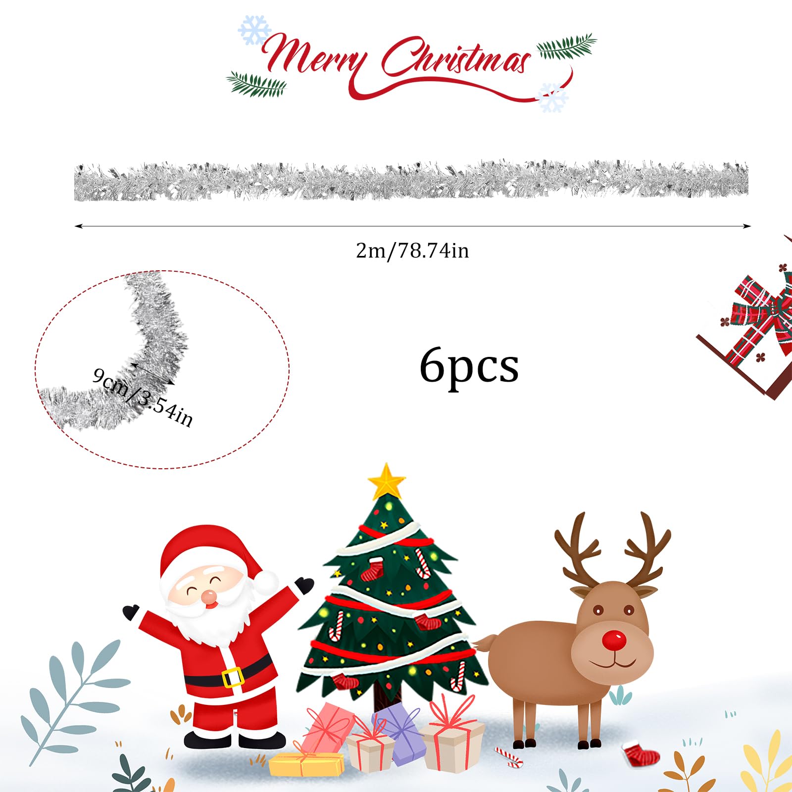 Bring Glanz in deine Weihnachtsdekoration! Dieses 6er Pack silberner Lametta-Girlanden macht jeden Baum zum Highlight. Jede Girlande ist 2 Meter lang - du kannst sie kombinieren oder kürzen. Aus hochwertigem PVC, leicht und wiederverwendbar. Einfach um den Baum wickeln, aufhängen oder als Deko für Kamin, Treppen oder Türen verwenden. Im Licht glänzt es wunderschön und verbreitet festliche Stimmung. Perfekt für Weihnachten, aber auch für Hochzeiten oder Partys. Einfach dekorieren und sich an der festlichen Atmosphäre erfreuen!