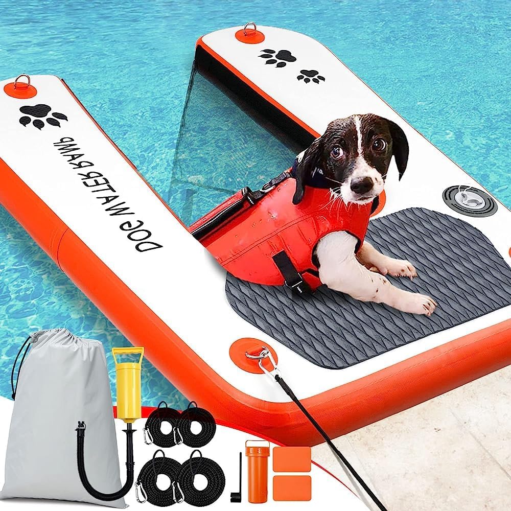 Sicherer Badespaß für deinen Vierbeiner! Diese aufblasbare Poolrampe gibt Hunden einen einfachen und sicheren Weg in und aus dem Pool. Mit den Maßen 150x100cm und einer Tragkraft von 105kg ist sie für kleine und große Hunde gleichermaßen geeignet. Die Anti-Rutsch-Oberfläche aus EVA bietet optimalen Halt, und die 6 D-Ringe ermöglichen eine sichere Befestigung. Einfach mit der beiliegenden Pumpe aufblasen und schon kann's losgehen. Nach dem Gebrauch kompakt zusammenfalten und in der praktischen Tragetasche verstauen. Damit macht Schwimmen nicht nur Spaß, sondern ist auch absolut sicher!