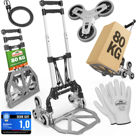 Endlich easy Treppen steigen mit schweren Sachen! Die CNSTZX Sackkarre hat spezielle 6 Räder, die das Hoch- und Runterfahren auf Treppen zum Kinderspiel machen. Aus leichter Aluminiumlegierung gebaut und klappbar auf nur 61x39x9 cm - super praktisch für kleine Wohnungen oder den Transport im Auto. Der teleskopierbare Griff lässt sich von 61 bis 106 cm verstellen und passt sich so jeder Körpergröße an. Mit den elastischen Spanngurten sicherst du deine Ladung fest, und die 4 abnehmbaren 360°-Lenkrollen sorgen für smoothies Fahren auf allen Böden. Hält bis zu 80 kg auf Treppen und 60 kg auf glattem Boden aus. Perfekt für Umzüge, Einkäufe, Lagerarbeit oder einfach für zu Hause. Nie wieder Rückenschmerzen vom Schleppen von Wasserkästen, Möbeln oder anderen schweren Dingen! Ein echter Lebensretter für alle, die in mehrstöckigen Häusern wohnen oder häufig schwere Dinge transportieren müssen.