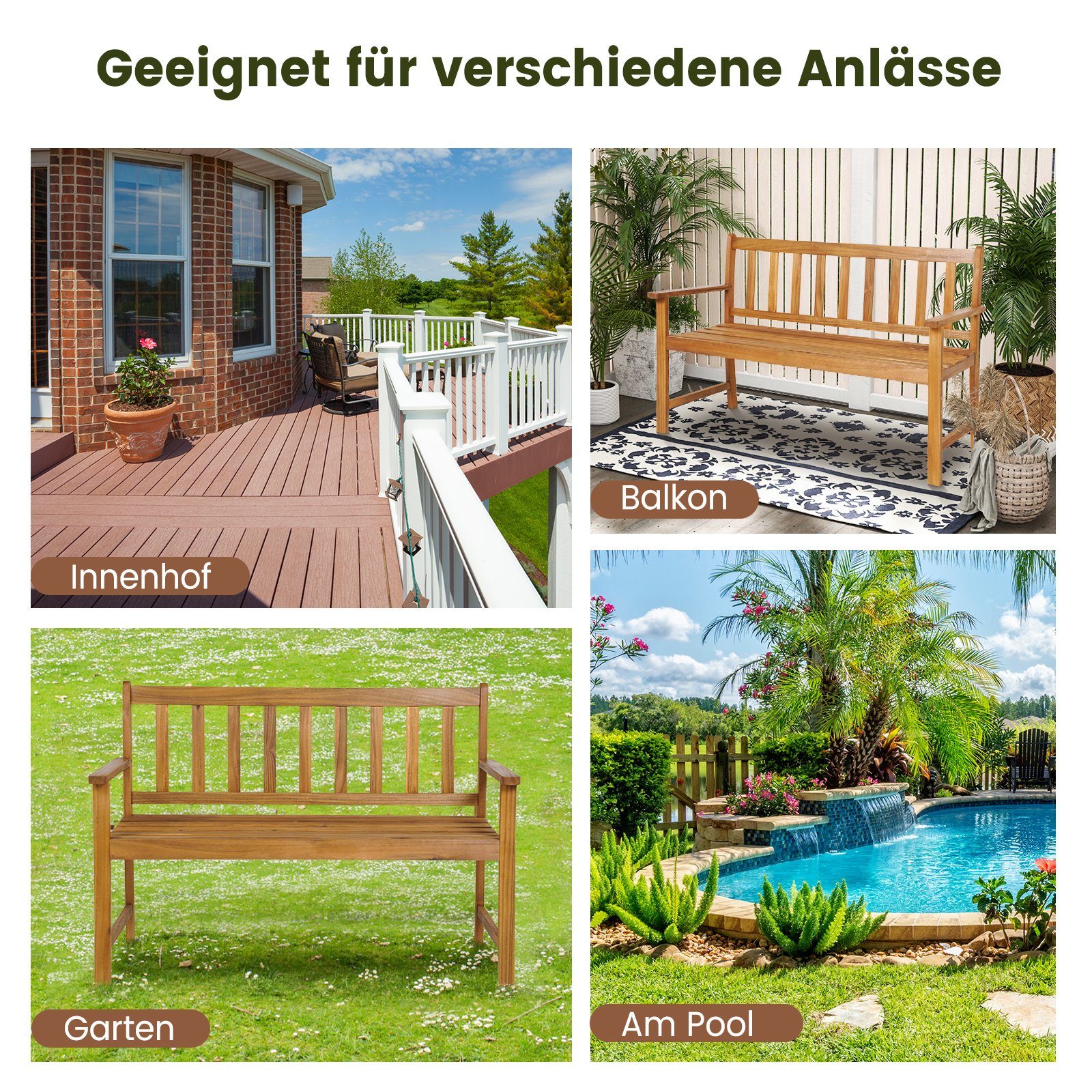 • COSTWAY Gartenbank 2-Sitzer - Wetterfeste Holzbank Für Terrasse & Balkon
