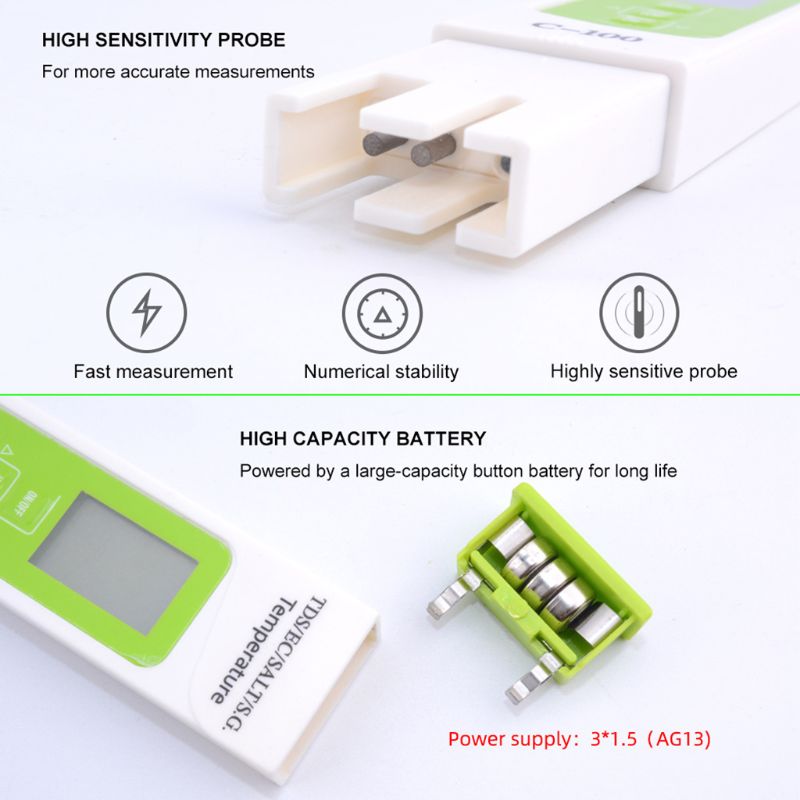 Wow, mit diesem 5-in-1-Tester checkst du ganz easy deine Wasserqualität! Misst pH-Wert, Salzgehalt, Leitfähigkeit, gelöste Feststoffe UND Temperatur - alles in einem Gerät. Das hintergrundbeleuchtete Display liest sich auch bei schlechtem Licht super. Mit HOLD-Funktion zum Messwert einfrieren und automatischer Abschaltung - praktisch! Temperaturbereich von 0°C bis 60°C, also egal ob im Winter oder Sommer, die Werte stimmen immer. Einfache Kalibrierung mit 4.01, 6.86, 9.18 Punkten - werkseitig schon vorbereitet. Perfekt für Schwimmbäder, Aquarien, aber auch für Trinkwasser oder sogar Kaffee! Ob du nun Hobby-Bastler oder Profi bist - dieses Tool ist unverzichtbar. Einfach ins Wasser halten und sofort die Werte ablesen. So behältst du immer den Überblick über deine Wasserqualität. Kein Rumgehantare mehr mit verschiedenen Messgeräten - alles in einem! Hol dir diesen praktischen Tester - dein Pool/Aquarium wird's dir danken! Einfach genial für alle, die Wert auf perfekte Wasserwerte legen.