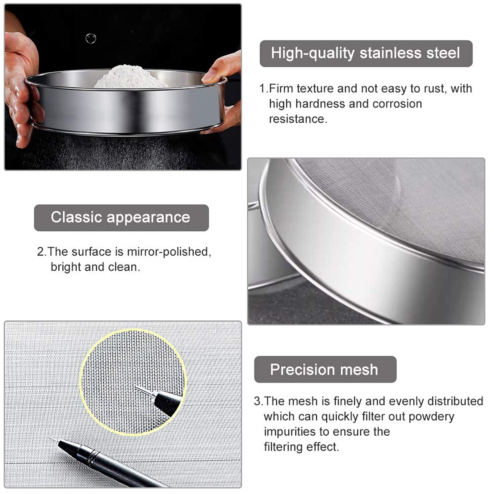 So ein praktisches Teil! Das Cabilock Sieb ist aus stabilem Edelstahl und superfein, damit auch wirklich nur das durchgeht, was soll. Perfekt zum Sieben von Kräutern, Mehl, Gewürzen oder sogar Harzpulver. Mit 20 cm Durchmesser ist es groß genug für normale Portionen, aber trotzdem handlich. Und das Beste: Es ist stapelbar! Klappt einfach zusammen und braucht kaum Platz in der Schublade. Sieht auch noch gut aus in silber. Ob in der Küche, für Backprojekte oder zum Filtern von trockenen Zutaten – hier geht nichts daneben. Einfach reinigen, abtrocknen und immer wieder verwenden. Aus robustem Metall, rostfrei und langlebig. Für alle, die gerne kochen, backen oder kreativ in der Küche sind!