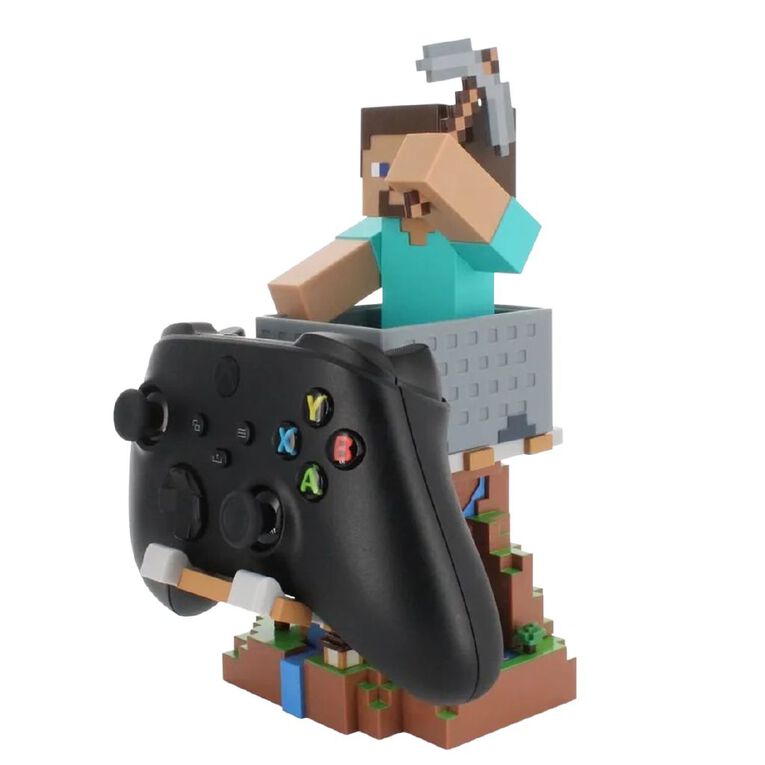 Für alle Minecraft-Fans! Dieser Steve in Diamantrüstung ist nicht nur Deko, sondern auch super praktisch. Der 20cm große Held hält deine Controller (PlayStation, Xbox, Switch) oder Smartphones sicher fest. Mit dabei: USB-Kabel zum Laden während der Aufbewahrung! Offizielles Lizenzprodukt - originalgetreu wie aus dem Spiel. Aus robustem PVC - hält auch wilden Gaming-Sessions stand. Maße: 25x15x13cm verpackt - perfekt fürs Regal ohne viel Platz wegzunehmen. Sieht mega cool aus und ist dabei richtig nützlich. Endlich Ordnung auf dem Gaming-Schreibtisch! Deine Controller haben immer ihren festen Platz. Einfach Controller oder Phone reinlegen, anschließen und laden während du nicht spielst. Macht jedes Gaming-Setup gleich viel stylischer. Einfach hinstellen und dich an Steve und der neuen Ordnung erfreuen!