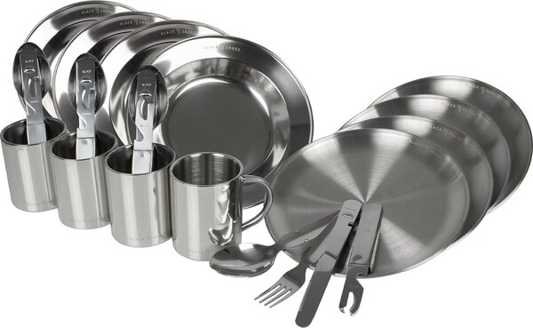 Ready fürs nächste Outdoor-Abenteuer? Das Black Snake Camping-Set hat alles, was du brauchst: je einen flachen und tiefen Teller (ca. 23-24cm), Besteck (Messer, Gabel, Löffel) und ne Thermotasse mit Karabiner. Alles aus robustem Edelstahl - absolut bruchsicher und nachhaltig (kein Plastik!). Das Besteck steckt platzsparend zusammen, inklusive Dosen- und Flaschenöffner. Die Tasse (300ml) hängst du einfach an den Rucksack. Perfekt für Camping, Wandern, Picknick oder Festival. Einfach reinigen, ewig haltbar. Für alle, die praktisches und langlebiges Geschirr für unterwegs suchen. Einfach einpacken und los!