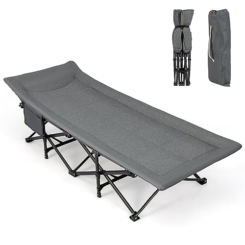 Dieses klappbare Campingbett ist der absolute Allrounder! Extra breit (68cm), trägt bis 200kg und lässt sich in Sekunden auf- und abbauen. Der Stahlrohr-Rahmen ist mega stabil, die Baumwollliegefläche super bequem. Mit praktischer Seitentasche für Handy & Co. Perfekt nicht nur für Camping, sondern auch als Gästebett zuhause oder für den Garten. Wird mit Tragetasche geliefert - einfach zusammenklappen und mitnehmen. Endlich bequem schlafen, wo immer du willst!