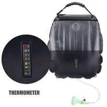 Das schwarze PVC-Material heizt das Wasser in nur 2-3 Stunden auf angenehme 45°C auf. Komplett auslaufsicher und extrem robust. Mit flexiblem Schlauch, komfortablem Duschkopf und stabilem Aufhängesystem.