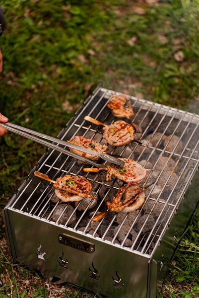 Grillvergnügen wohin du willst! Dieser praktische Vedem Grill lässt sich blitzschnell zusammenfalten und ist mit nur 6,5kg superleicht zu transportieren. Aus robustem 1,5mm verzinktem Stahl gefertigt - absolut korrosionsgeschützt und langlebig. Das 3-teilige Design mit Feuerbehälter, Aschebehälter und nickelbeschichtetem Grillrost macht das Grillen sauber und einfach. Mit praktischen Spießhalterungen für Abwechslung am Grill. Inklusive wasserfester Tragetasche für den einfachen Transport im Auto oder Rucksack. Perfekt für Camping, Picknick, Garten oder Balkon. Endlich überall frisch Gegrilltes genießen!