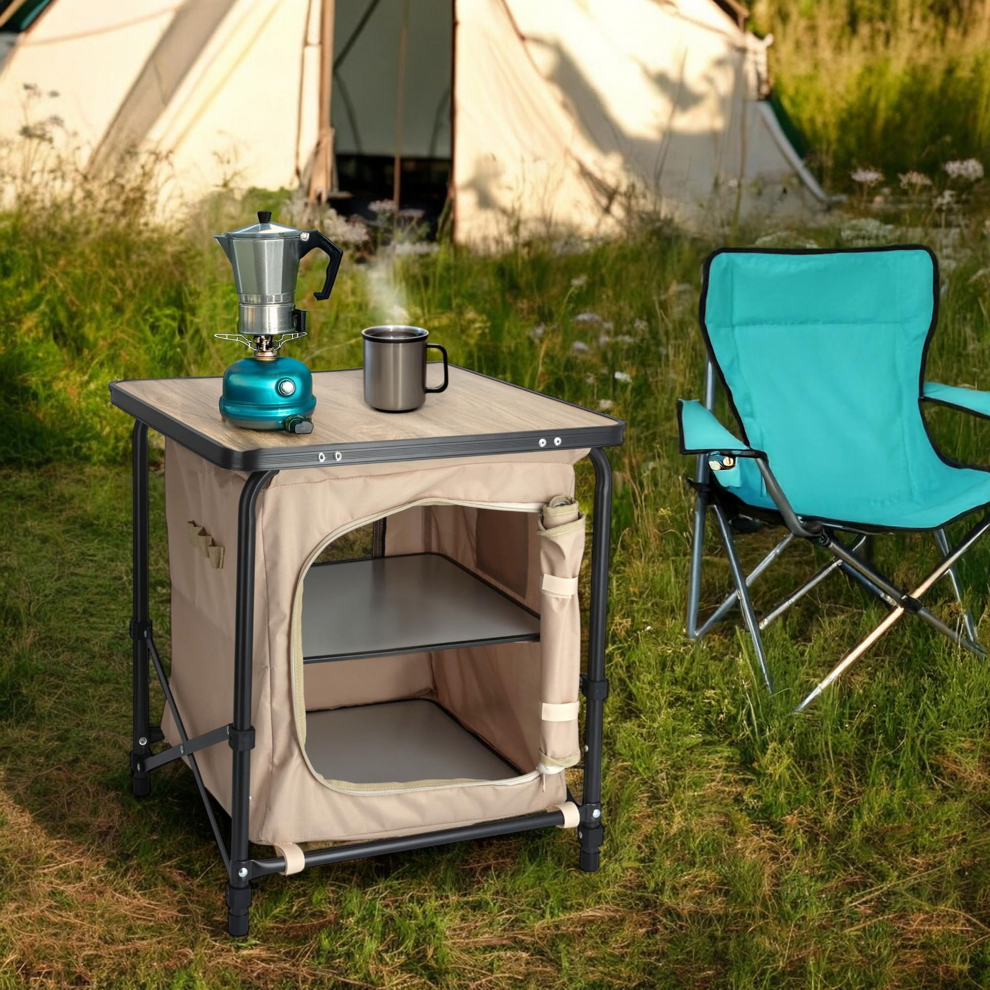 Also dieser Campingschrank von Milageto ist echt praktisch für alle Outdoor-Fans! Der zusammenklappbare Schrank besteht aus einem stabilen Aluminiumrahmen und robustem Oxford-Stoff, der richtig was aushält. Mit den Maßen 44,5 x 40,5 x 57,5 cm (aufgebaut) bietet er zwei Etagen Stauraum für Kleidung, Lebensmittel oder Campingzubehör. Das Beste: Er lässt sich super einfach zusammenklappen auf nur 69 x 19 x 16 cm und kommt mit einer praktischen Tragetasche - perfekt für unterwegs! Die Reißverschlüsse laufen super smooth und geben dir easy Zugriff auf deine Sachen. Ob beim Camping, Grillen, Picknicken oder am Strand - dieser Organizer hält deine Sachen ordentlich und geschützt. Die Aluminiumlegierung ist rostfrei und der Oxford-Stoff wasserabweisend, also macht auch mal ein Regenschauer nichts aus. Einfach aufbauen, befüllen und schon hast du deine eigene Outdoor-Kommode! Für Gartenfeste, Festival oder den nächsten Campingausflug ist das Teil einfach unschlagbar praktisch.