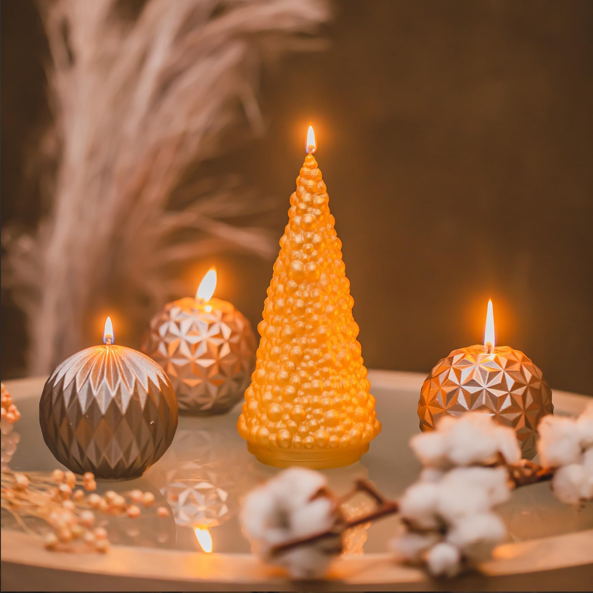 Candellana Weihnachtsbaum Kerze - Handgemachte Geometrische Deko-Kerze Aus Veganem Paraffin