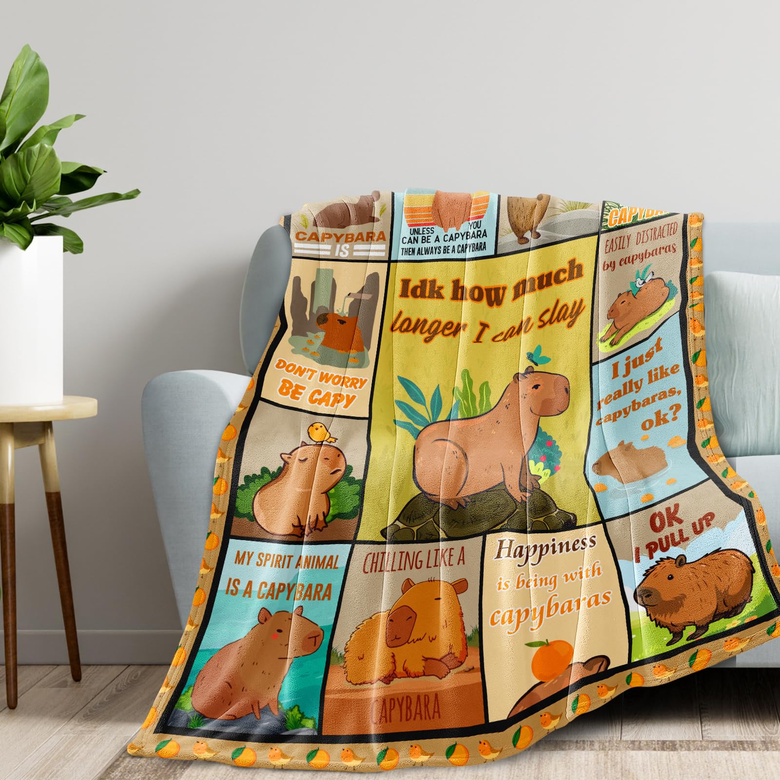 Diese entzückende Capybara-Decke ist das perfekte Geschenk für alle, die diese süßen Tiere lieben! Mit den Maßen 152,4 x 127 cm ist sie groß genug zum Einkuscheln auf dem Sofa oder im Bett. Hergestellt aus weichem, hautfreundlichem Stoff, bietet sie unvergleichlichen Komfort. Das niedliche Design zeigt spielende und schlafende Capybaras in einer fantasievollen Welt - einfach zum Verlieben! Perfekt für gemütliche Filmabende, zum Lesen oder als dekorative Zudecke. Ob für Geburtstage, Weihnachten oder einfach so - diese Decke bringt Freude und Wärme in jedes Zuhause. Leicht zu pflegen (maschinenwaschbar) und praktisch zum Mitnehmen. Ein einzigartiges Geschenk, das von Herzen kommt und jeden Capybara-Fan begeistern wird!