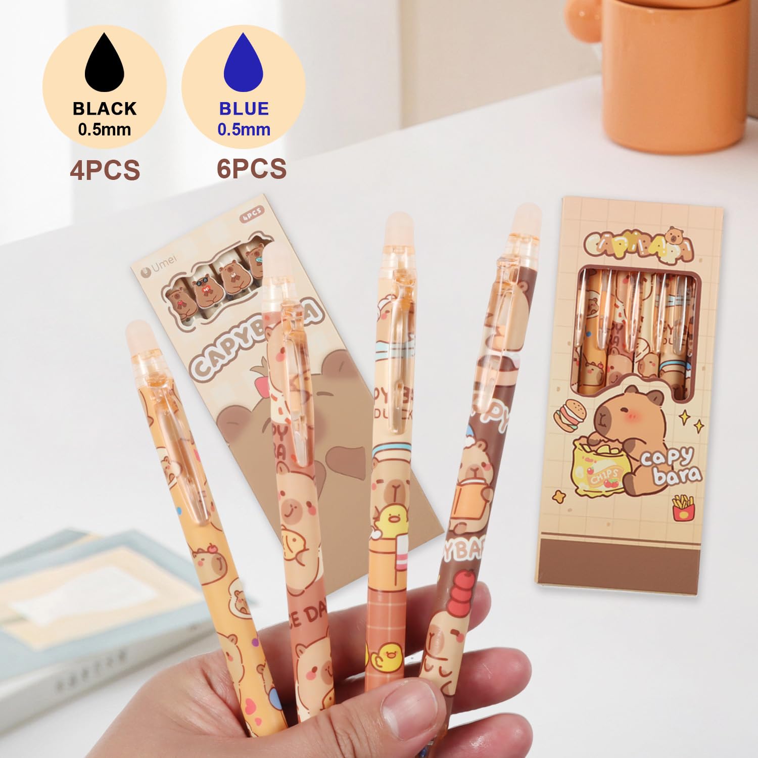 Oh mein Gott, wie niedlich sind denn diese Capybara-Stifte?! Das Set hat 6 verschiedene Stifte, jeder mit einem anderen süßen Capybara-Motiv. Die sind nicht nur hübsch anzusehen, sondern können auch was! Mit der Radierfunktion kannst du einfach wegradieren, was du geschrieben hast - keine Spuren, kein Ärger. Perfekt für Entwürfe oder wenn man mal was ändern will. Die 0,5 mm Mine schreibt supergleichmäßig und die Tinte verwischt nicht. Der ergonomische Griff liegt super in der Hand, selbst wenn man länger schreibt. Jeder Stift ist 15,5 cm lang und hat diesen kawaii Look in Pastellfarben. Ob für die Schule, Uni oder Büro - damit macht Schreiben richtig Spaß! Und als Geschenk sind sie natürlich auch der Hit. Die Verpackung ist schon richtig hübsch, also perfekt zum Verschenken. Für alle, die niedliche Schreibwaren lieben oder einfach mal was Anderes wollen als langweilige Standard-Stifte.