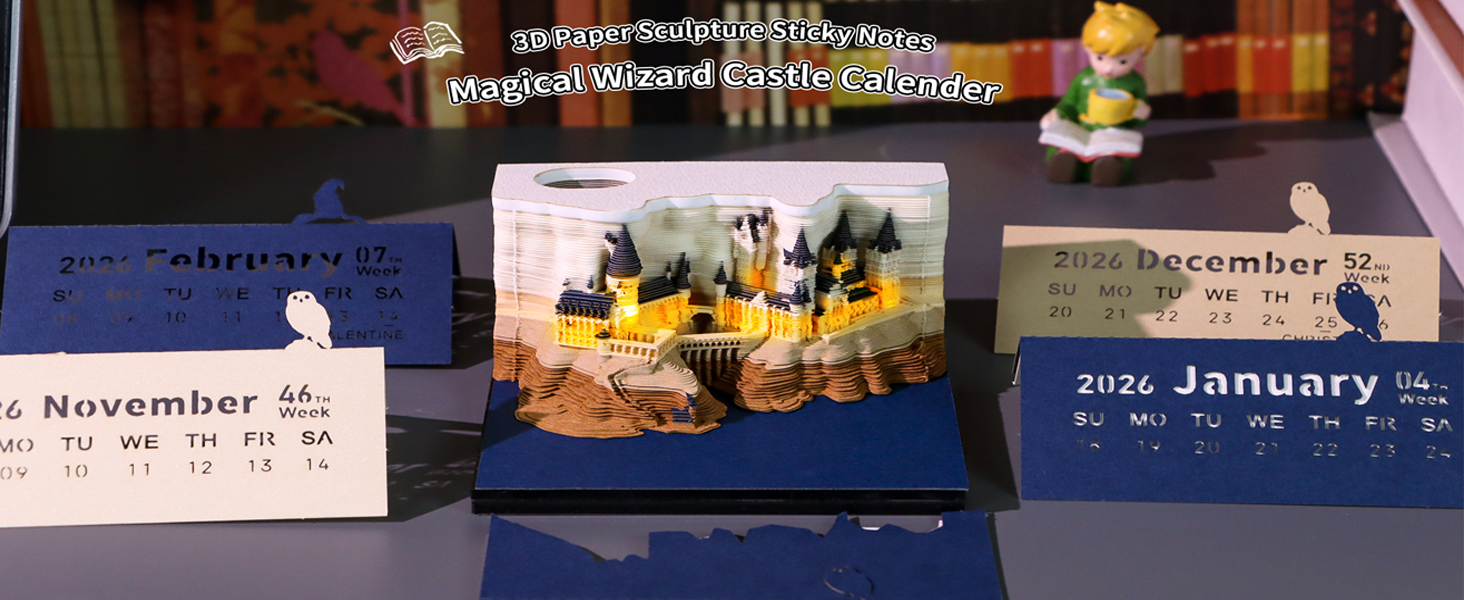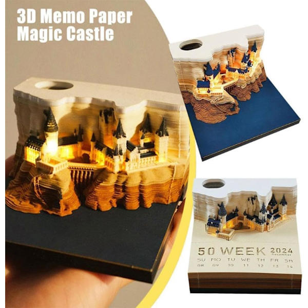 Ein Kalender, der Magie verspricht! Dieser 3D-Zeitmesser verwandelt sich im Laufe des Jahres in ein faszinierendes Schloss-Modell. Maße: 90 x 91 x 49 mm - perfekt für den Schreibtisch. Mit integrierter LED-Beleuchtung, die per Touch aktiviert wird und deinen Raum in magisches Licht taucht (2 AAA Batterien benötigt). Das hochwertige Spezialpapier wird mit Papierskulptur-Techniken verarbeitet. Jeden Tag eine Seite abreißen - am Ende des Jahres enthüllt sich das komplette 3D-Modell. Die Acryl-Schutzhülle dient als stylischer Ständer und schützt vor Staub. Ideal als Büro-Deko, Geschenk für besondere Anlässe oder einfach für alle, die das Besondere lieben. Wecke die Magie in deinem Alltag!