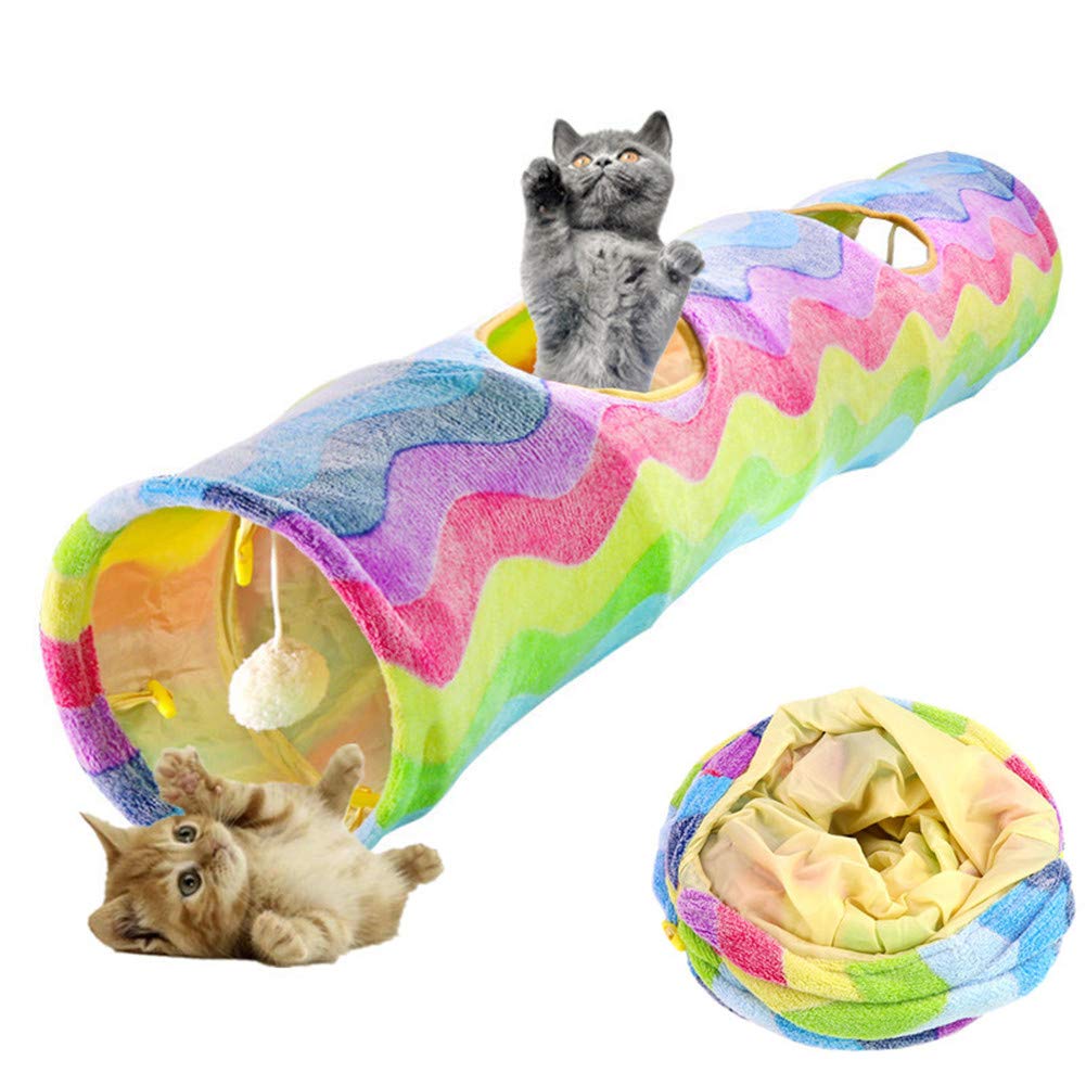 Boah, deine Katze wird diesen Würfel-Tunnel lieben! Dieser coole Katzen-Würfel ist das perfekte Spielzeug für neugierige Stubentiger. Mit drei Öffnungen an verschiedenen Seiten können deine Katzen nach Herzenslust rein und raus flitzen. Das besondere Highlight: Eingebaute Glocken im Inneren - das weckt den Jagdinstinkt und sorgt für stundenlangen Spielspaß! Aus weichem Polyestergewebe gefertigt, ist der Tunnel sicher und bequem für deine Katze. Maße: 40x40x40 cm - also perfekt für die meisten Katzen und sogar für kleine Hunde geeignet. Und das beste: Er ist faltbar! Wenn deine Katze genug gespielt hat, klappst du ihn einfach zusammen und bewahrst ihn platzsparend auf. So bleibt deine Wohnung schön ordentlich. Reinigen ist auch total easy - einfach mit einem feuchten Lappen abwischen oder vorsichtig mit Wasser säubern. Ob als Versteckhöhle, zum Spielen oder zum Trainieren - dieser Katzenwürfel macht einfach alles mit. Deine Katze wird verrückt danach sein - versprochen!