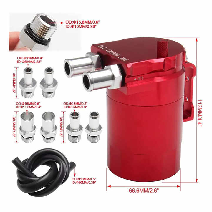 Schütze deinen Motor vor schädlichem Ölnebel! Dieser hochwertige Oil Catch Can aus Aluminium fängt Ölrückstände auf, bevor sie deinen Motor verunreinigen können. Das Ergebnis? Dein Motor bleibt sauberer, leistungsstärker und hält länger.