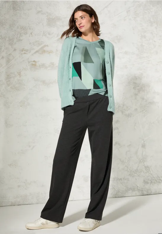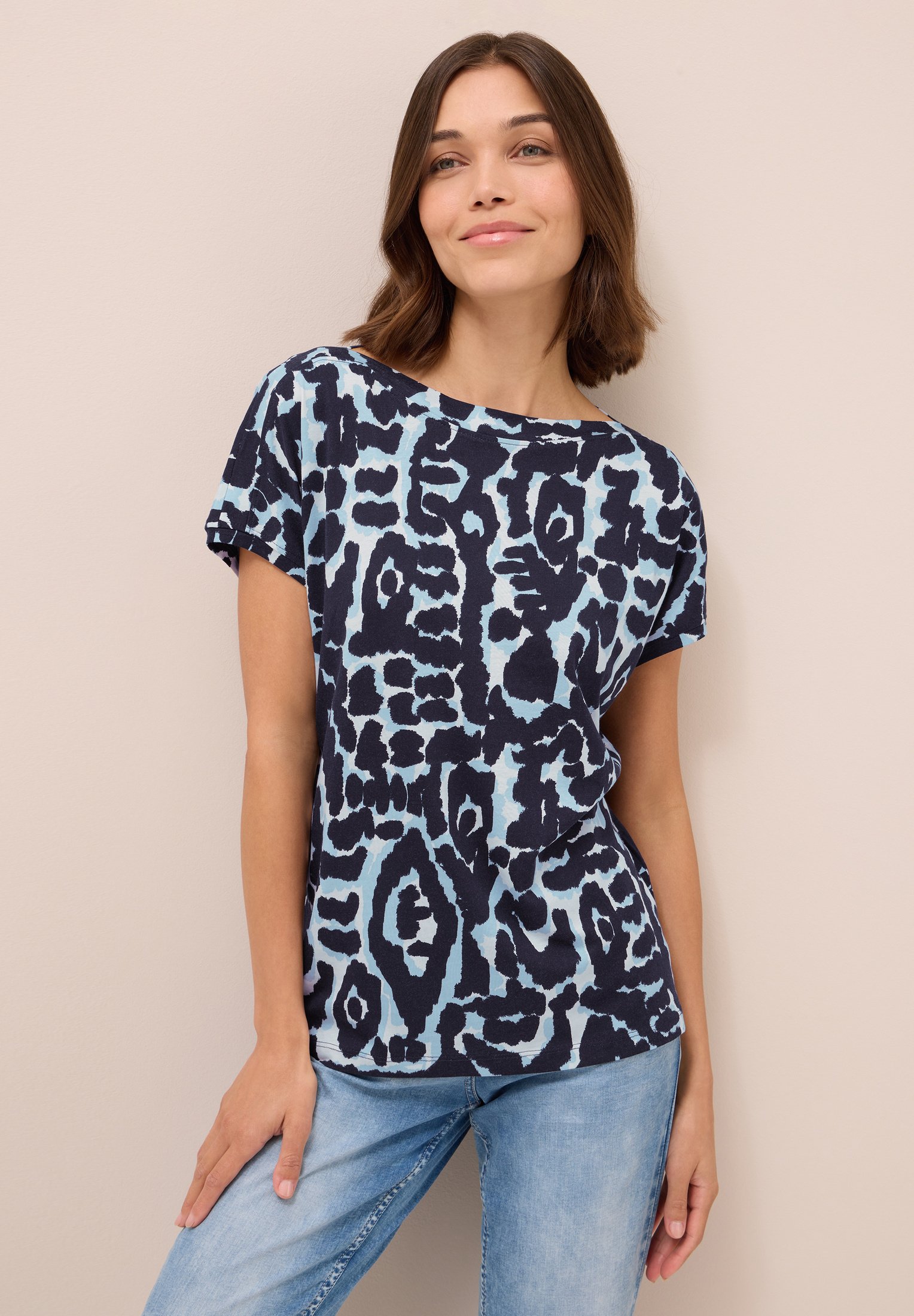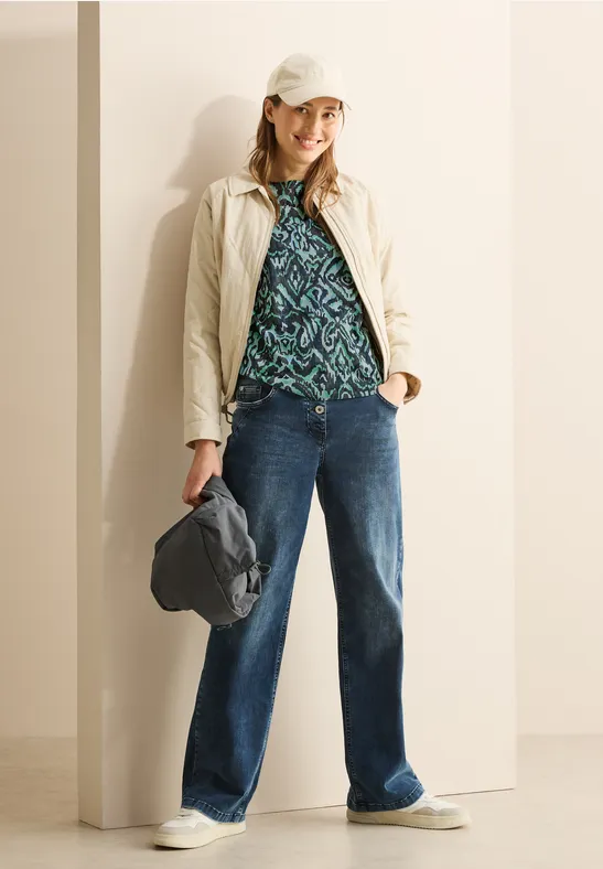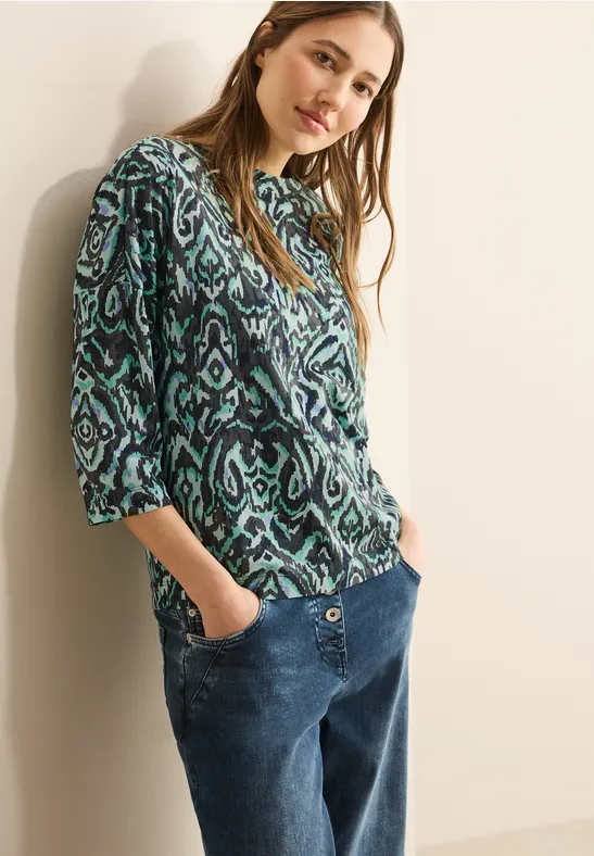 Total lässig und superbequem - dieses Cecil Damenshirt wird dein neuer Liebling im Schrank! Mit dem coolen grafischen Muster und dem trendigen U-Boot-Ausschnitt siehst du einfach immer stylisch aus. Die 3/4-Ärmel und die seitlichen Schlitze sorgen für eine entspannte Passform, die sich einfach toll trägt. Perfekt für den Alltag - ob zum Einkaufen, fürs Büro oder einfach so. In Größe M hat es eine vordere Länge von 64 cm, Brustweite 54,5 cm, Armlänge 47 cm und untere Weite 54,5 cm. Einfach anziehen und wohlfühlen - mehr braucht es nicht für einen unkomplizierten Look, der trotzdem was hermacht. Das Shirt ist vielseitig kombinierbar und passt zu Jeans, Röcken oder Leggings. Ein echter Allrounder, den du immer wieder anziehen wirst!