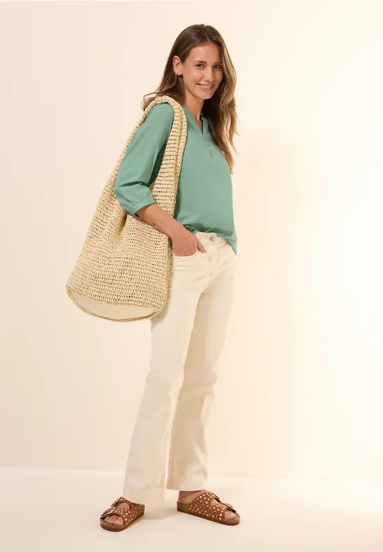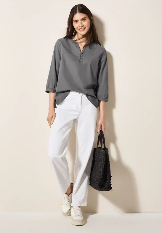 Die perfekte Alltags-Tunika von CECIL! Aus 100% reiner Baumwolle gefertigt, fühlt sich diese Bluse angenehm weich auf der Haut an und ist ideal für warme Tage. Der geschlitzte Ausschnitt mit dekorativer Knopfleiste verleiht ihr einen eleganten Touch, während die 3/4-Ärmel mit elastischen Bündchen für optimalen Komfort sorgen. Der gerundete Saum betont deine Figur auf schmeichelhafte Weise. Super vielseitig kombinierbar - ob zu Jeans, Leggings oder Rock, diese Tunika passt immer! Perfekt fürs Büro, den Freizeit-Bereich oder besondere Anlässe. Die leichte Baumwolle ist atmungsaktiv und sorgt dafür, dass du auch an wärmeren Tagen nicht ins Schwitzen kommst. Ein echter Klassiker, der in keiner Damen-Garderobe fehlen sollte! Die Verarbeitung ist typisch CECIL - hochwertig und langlebig. Waschbar und pflegeleicht, behält auch nach häufigem Tragen ihre Form und Farbe. Verfügbar in verschiedenen Größen, findest du garantiert deine perfekte Passform. Eine Tunika, die sich sehen lassen kann - stylisch, bequem und absolut alltagstauglich! Perfekt für alle, die Wert auf Qualität und zeitloses Design legen.
