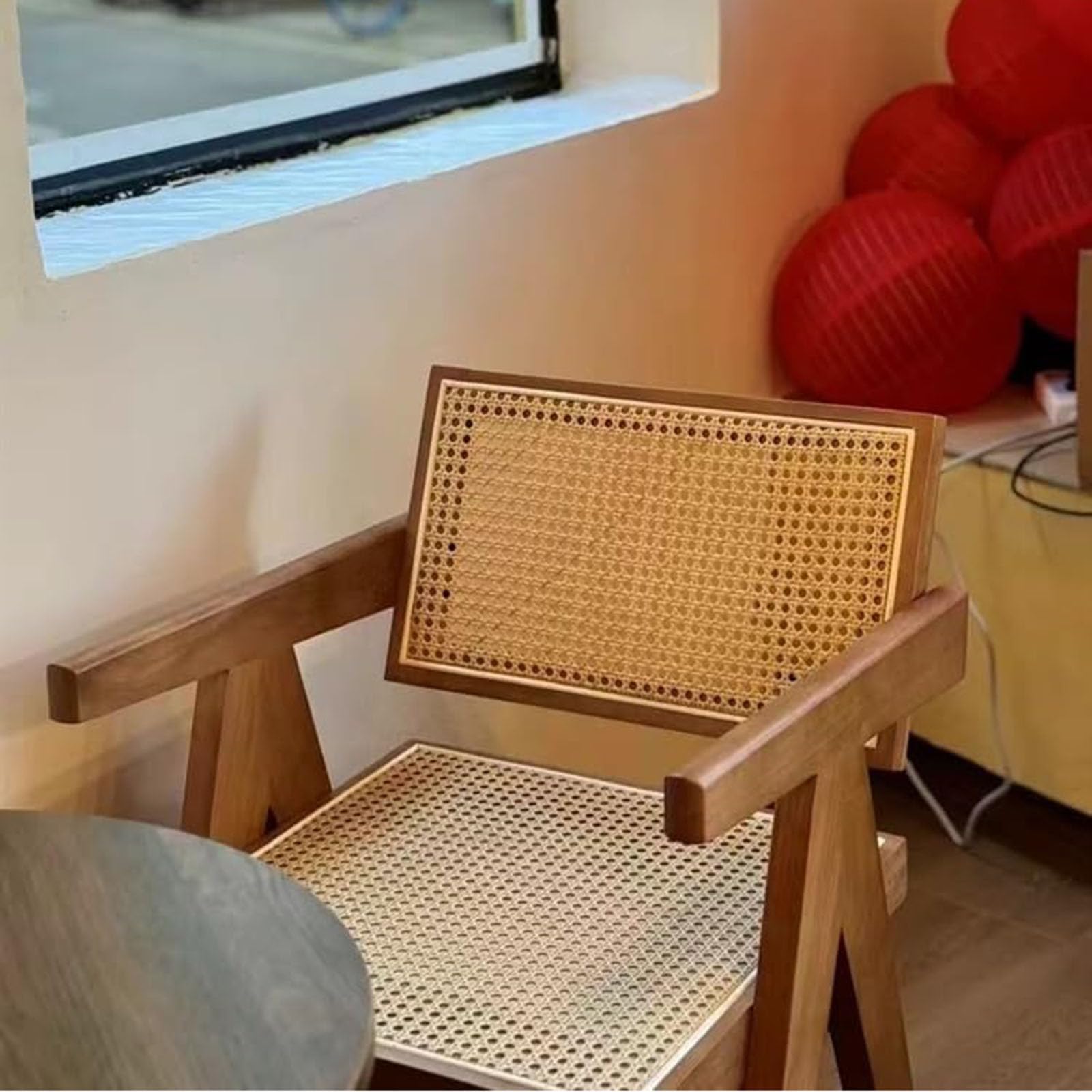 Dieser Mid-Century Rattan-Sessel bringt Retro-Charme in dein Zuhause! Das armlose Design sieht nicht nur super aus, sondern ist auch mega bequem. Hergestellt aus robustem Rattan und Eiche in Kirschholz-Optik. Maße: 61x74x59cm, Sitzhöhe 32cm. Perfekt für Wohnzimmer, Homeoffice oder als Akzentstuhl. Das 'N'-förmige Gestell bietet stabilen Halt, die nach hinten geneigte Rückenlehne entlastet den Rücken. Leicht und trotzdem extrem stabil - einfach zu bewegen. Vier Farben zur Auswahl. Ein echter Hingucker für jeden Raum!