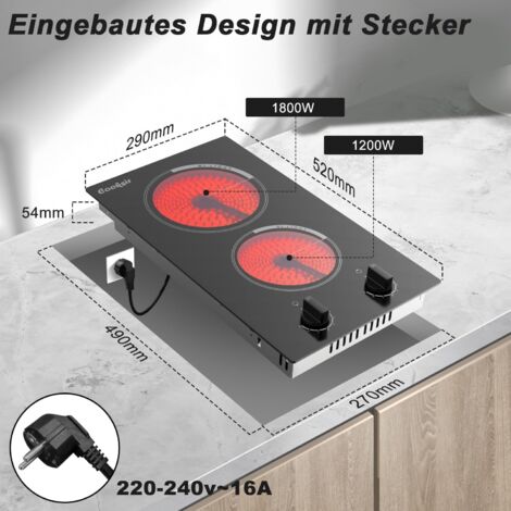 Hey Hobby-Köche! Dieses Sararoom Cerankochfeld ist super praktisch für jede Küche. Mit stolzen 3500W Leistung - heizt richtig schnell auf! Infrarot-Technologie sorgt für effizientes Kochen. Touch-Steuerung und Drehknopf geben dir volle Kontrolle über die Hitze. 4 voreingestellte Modi: Braten, Grillen, Schnellkochen und Fondue - für jede Gelegenheit was dabei! Timer von 0-180 Minuten - kannst du entspannt nebenher machen. Mit intelligentem Kühlsystem und Überhitzungsschutz - absolut sicher. Der hitzebeständige Tragegriff macht es super mobil. Einfach mit Stecker an 220V anschließen und loskochen! Perfekt als Zusatzplatte oder für kleine Küchen. Einfach reinigen - feuchtes Tuch genügt. Mehr Komfort beim Kochen geht kaum!