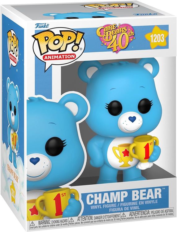 Oh wie süß! Dieser Champ Bear aus den Care Bears ist jetzt als Funko Pop! Figur erhältlich - und noch dazu beflockt, also ganz weich und kuschelig! Mit 9cm Höhe passt er perfekt in jede Sammlung und wird in der typischen Funko Schaufensterbox geliefert. Die Qualität ist wie immer top und das Design einfach niedlich. Perfekt für Care Bears Fans, Sammler oder einfach als Geschenk für jung und alt. Stell ihn ins Regal, sammle die anderen Care Bears oder überrasche jemanden mit diesem kuscheligen Begleiter. Aber Achtung: Für kleine Kinder unter 3 Jahren nicht geeignet, wegen verschluckbarer Kleinteile. Ein muss für jeden Care Bears Fan - hol dir deinen Champ Bear bevor er weg ist!