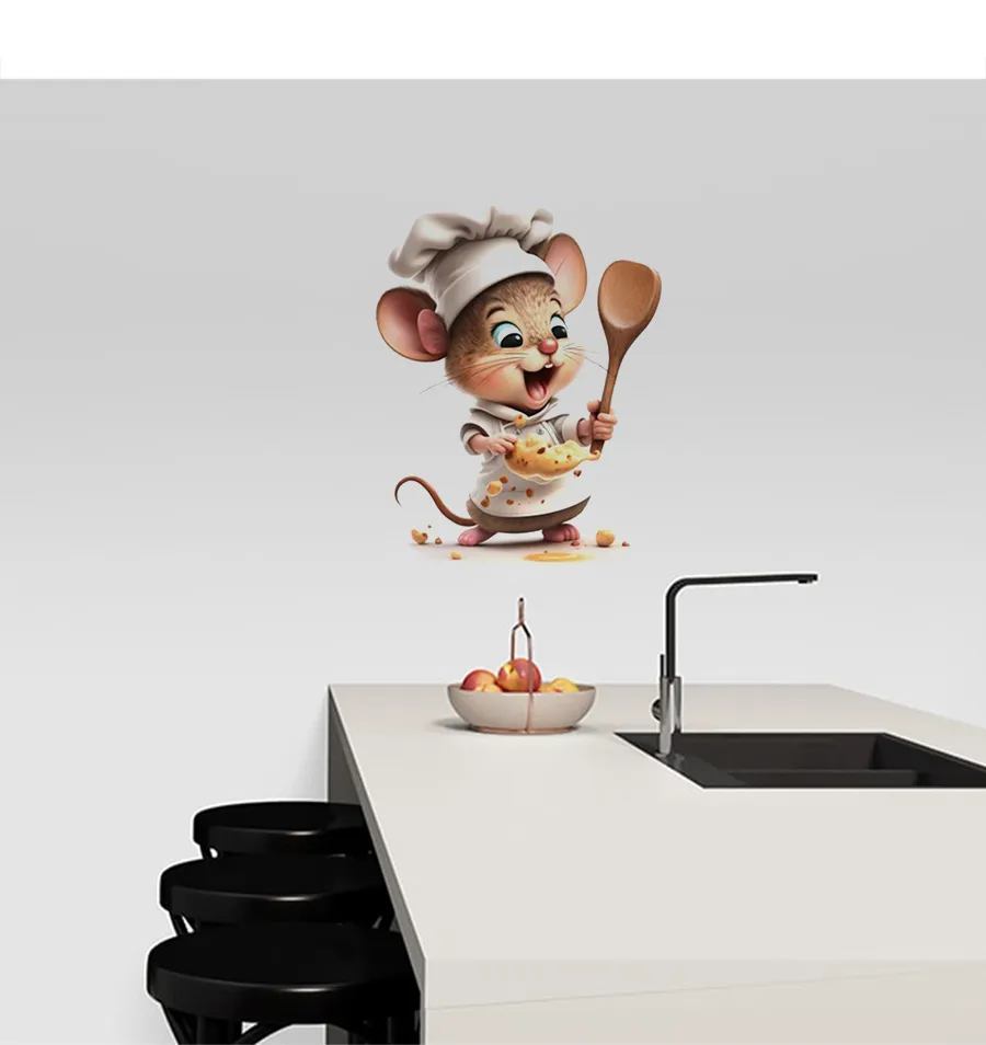 Wie niedlich! Dieser süße Mäuse-Chef Wandaufkleber bringt Leben an deine Wände. Mit 12x15cm Größe ist er perfekt für Küche, Restaurant oder Kinderzimmer. Aus hochwertigem PVC-Vinyl gefertigt, ist er wasserfest und sonnenbeständig. Einfach abziehen und aufkleben - ohne Rückstände! Ob für Hochzeiten, Geburtstage oder einfach zur Verschönerung deiner vier Wände. Der niedliche Cartoon-Stil sorgt für eine gemütliche Atmosphäre und ist ein tolles Geschenk für Kinder und Erwachsene. Haftet auf allen glatten Oberflächen wie Wänden, Glas oder Möbeln. Deine Wände werden sich freuen!