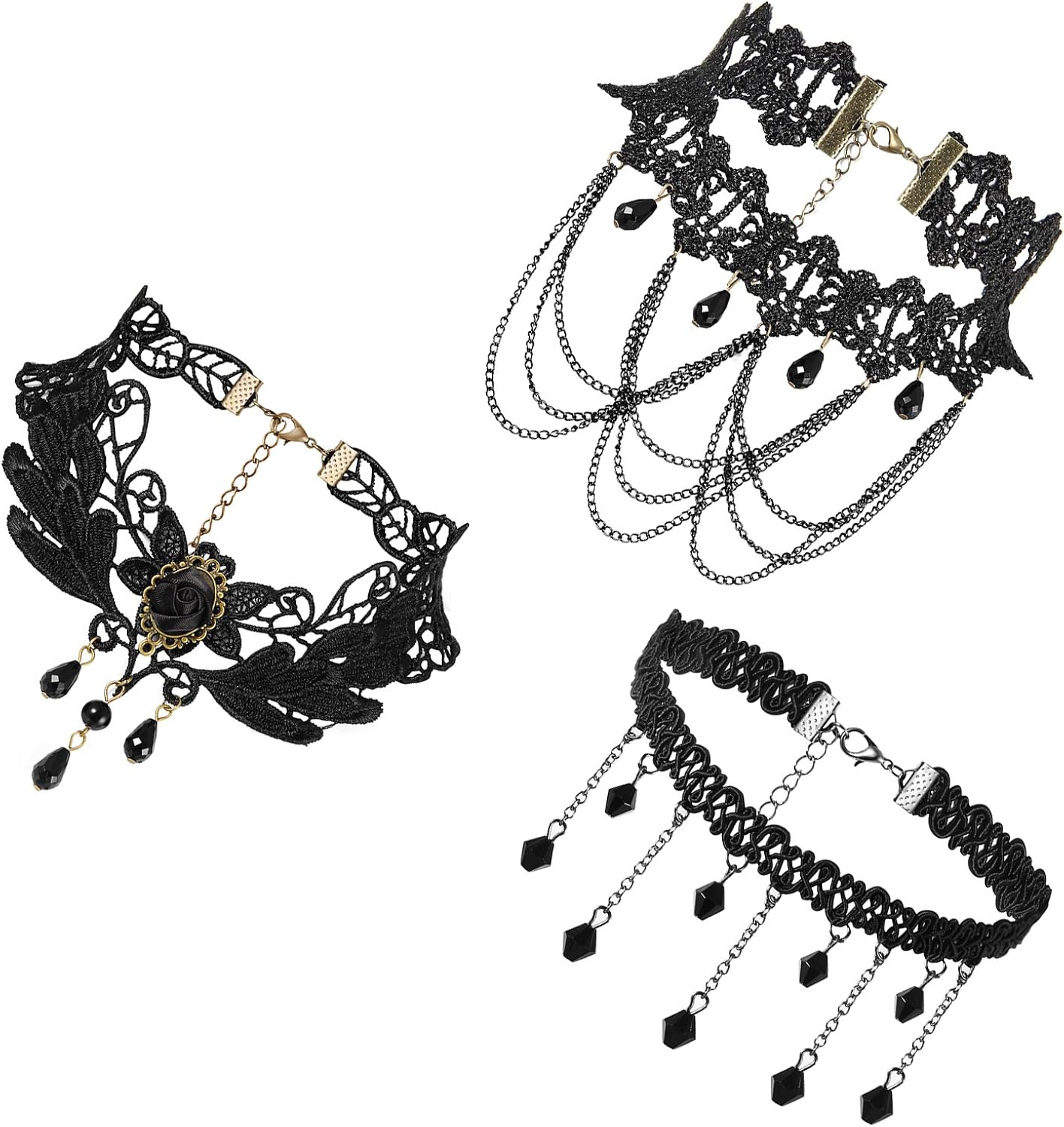 Total angesagtes Choker-Set im Gothic-Style! Dieses 13-teilige Set enthält die verschiedensten schwarzen Choker - mit Spitzenelementen, Samtbändern, Metallapplikationen und coolen Details wie Federn, Kreuzen und Perlen. Jeder Choker ist verstellbar (30-40cm) und passt sich perfekt deinem Halsumfang an. Super vielseitig kombinierbar - trag sie einzeln, layer sie oder mixe sie mit deinem Lieblings-Outfit. Aus hautfreundlichen Materialien wie weichem Polyester und hochwertigen Metallelementen. Perfekt für Partys, Halloween, Cosplay oder einfach für den täglichen Style. Leicht und angenehm zu tragen - kein Druckgefühl auch nach längerer Zeit. Ein absolutes Must-have für alle, die ihren Look aufpeppen wollen! Auch ein super Geschenk für modebewusste Freundinnen. Hol dir dieses stylische Set und kreiere deinen eigenen einzigartigen Look!