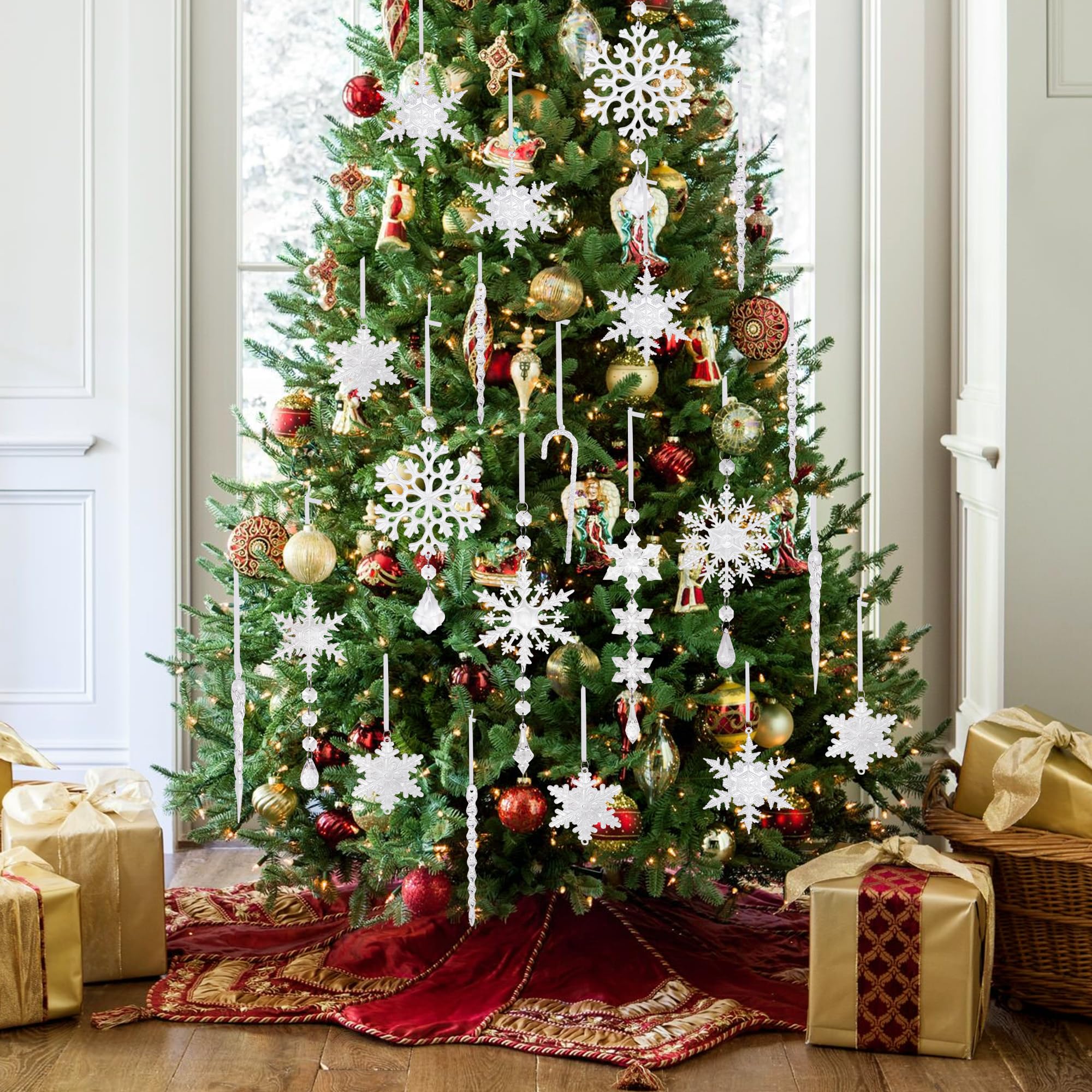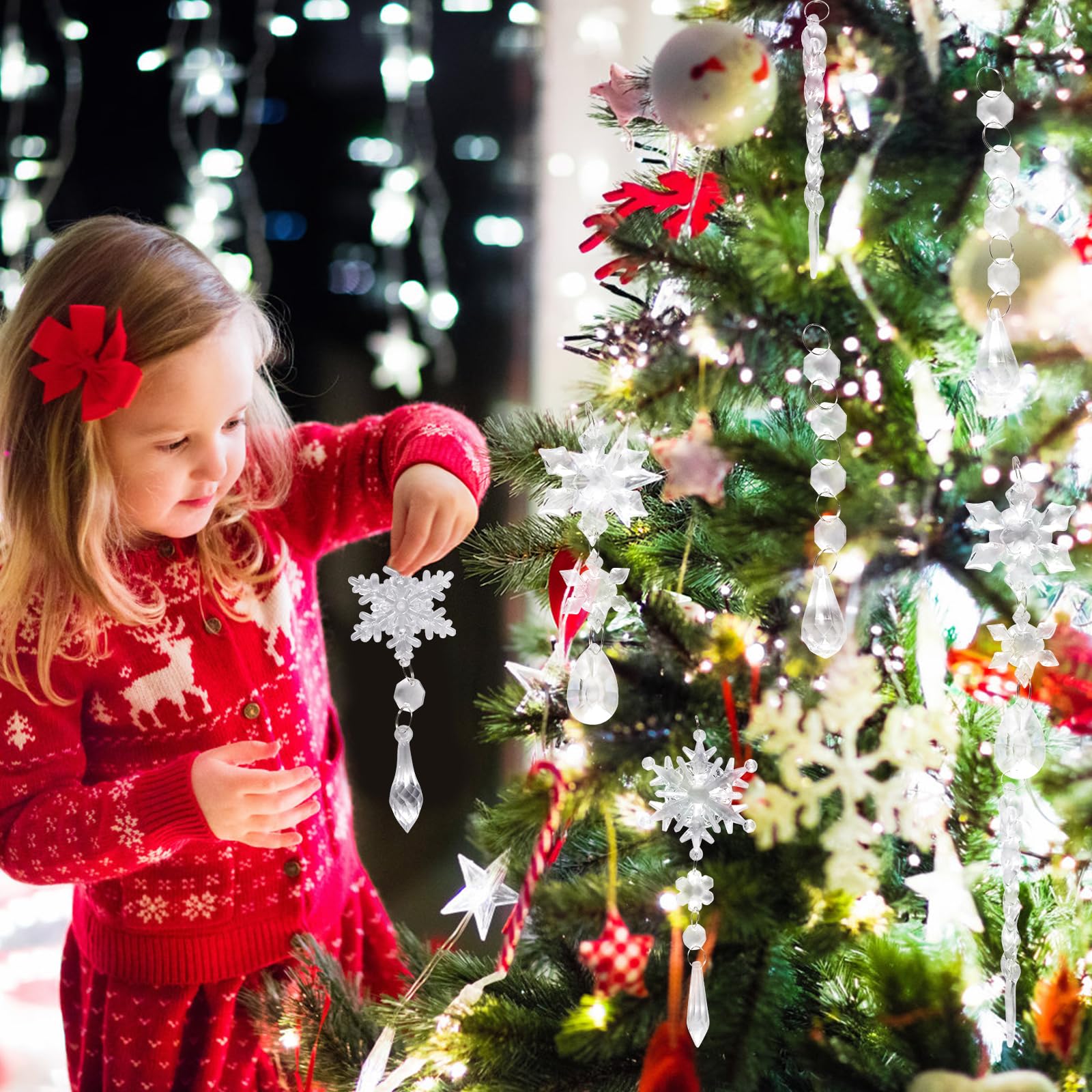 Weihnachtszauber pur! 10 wunderschöne Eiszapfen-Anhänger aus klarem Acryl. In 5 verschiedenen Designs mit Schneeflocken- und Tropfen-Motiven. Komplett mit Aufhängebändern. Sie funkeln im Lichterglanz wie echter Kristall. Absolut bruchfest und wiederverwendbar. Perfekt für den Weihnachtsbaum, Fenster oder als Winterdeko. Einfach aufhängen und sich an der festlichen Stimmung erfreuen - weihnachtlicher geht's kaum!