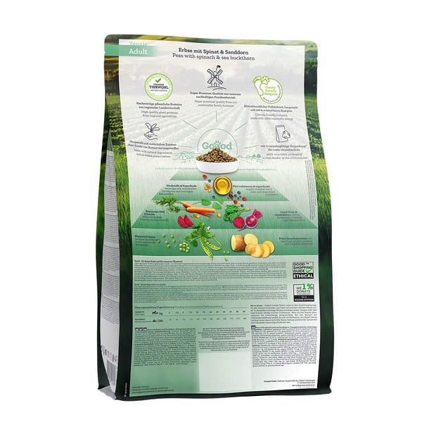Vegetarisch glücklich - auch für Hunde! Dieses innovative Christopherus Vegetarian Hundefutter beweist, dass vollwertige Ernährung auch ohne Fleisch möglich ist. Mit 4 kg Inhalt hast du genug Vorrat für deinen ausgewachsenen Hund. Die Rezeptur basiert auf Erbsen (20%), Tapioka (20%) und Erbsenprotein (18%) - alles bestens verträglich und bekömmlich. Angereichert mit Kokosnussöl, Kürbis, Leinsamen und wichtigen Vitaminen unterstützt dieses Futter die Vitalität, Haut, Fell, Gelenke und Verdauung deines Hundes. Ohne künstliche Farb-, Aroma- oder Konservierungsstoffe - nur das Beste für deinen Liebling! Besonders praktisch: Die Fütterungsempfehlung auf der Verpackung hilft dir, die richtige Menge zu finden. Ob dein Hund Allergien hat, du vegetarisch lebst oder einfach mal was Neues ausprobieren willst - dieses Futter ist eine super Alternative. Dein Hund wird's lieben - und die Umwelt auch! Probier's aus und überzeug dich selbst.