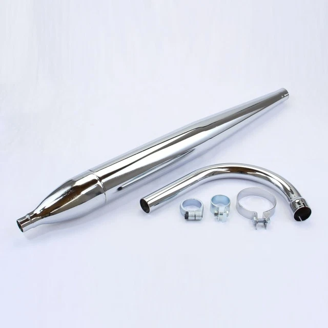 Mit den Maßen 505mm Länge und 220mm Höhe passt er perfekt. Der Zylinderanschluss hat 24mm Innendurchmesser, der Schalldämpferanschluss 26mm Außendurchmesser - alles genau wie beim Original. Einfach mit der Schellenbefestigung montieren und fertig!