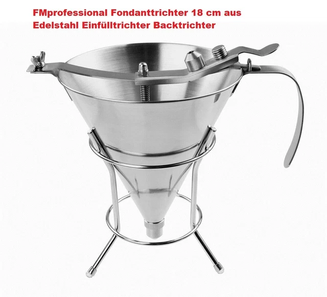 Für alle, die gerne backen und verzieren: Dieser Fondanttrichter aus Chromnickelstahl ist ein echter Game-Changer in der Küche! Mit 18cm Durchmesser und 20,5cm Höhe ist er perfekt für das Arbeiten mit Fondant, Zuckerguss und anderen Dekormassen. Die drei verschiedenen Durchlauföffnungen (4, 5 und 6 mm) geben dir die volle Kontrolle über deine Verzierungen. Ob Torten, Cupcakes oder Plätzchen - damit gelingt jede Verzierung professionell. Das Chromnickelstahl-Material ist nicht nur rostfrei und langlebig, sondern auch super hygienisch und leicht zu reinigen. Kein Kleckern mehr, kein Ärger mit ungleichmäßigen Verzierungen. Einfach die gewünschte Masse einfüllen und mit gleichmäßigem Druck arbeiten - schon sehen deine Kreationen aus wie vom Konditor. Perfekt für Hobbybäcker, die ihre Skills aufs nächste Level bringen wollen. Auch für flüssige Schokolade oder Deko-Glasuren super geeignet. Macht nicht nur Spaß, sondern spart auch richtig Zeit beim Dekorieren. Einfach ausprobieren und staunen, was damit alles möglich ist!