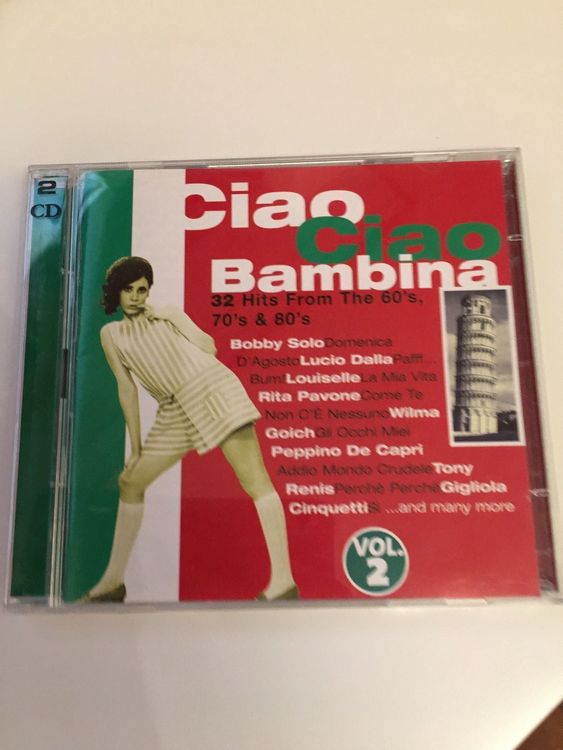 Time-Travel in die goldenen Jahre des italienischen Schlagers! Diese 2CD-Sammlung 'Ciao Ciao Bambina' vereint 40 unvergessliche Hits aus den 60er und 70er Jahren. Entdecke die schönsten Melodien, die Generationen begeistert haben. Perfekt für Nostalgie-Fans, Italien-Liebhaber und alle, die gute Musik schätzen. Mit bekannten Künstlern und Evergreens, die sofort gute Laune machen. EAN: 4009910464823. Ideal für gemütliche Abende, Auto-Fahrten oder als Geschenk für Musikliebhaber. Tauche ein in den Soundtrack einer ganzen Ära - voller Emotionen, Romantik und italienischem Flair. Hol dir jetzt das musikalische Stück Italien nach Hause!