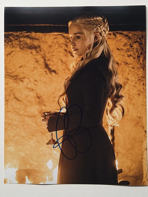 Ein Muss für jeden Game of Thrones Fan! Dieses professionell signierte Foto zeigt Emilia Clarke in ihrer ikonischen Rolle als Daenerys Targaryen (Khaleesi). Das 25,4 x 20,3 cm große Foto ist hochwertig auf einem 1,5 mm dicken, schwarzen Passepartout montiert und kommt fertig zum Einrahmen.