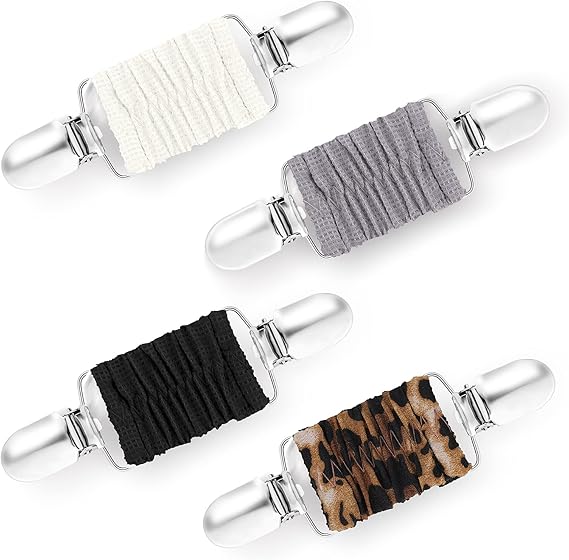 Wie süß sind denn diese Cardigan Clips! Im 5er-Set mit verschiedenen Designs - alle mit funkelnden Strasssteinen verziert. Aus hochwertiger Legierung mit dehnbaren Gummibändern, die nicht reißen.\n\nSuper einfach zu benutzen: Einfach an den Pullover, Cardigan oder Schal klippen und schon rutscht nichts mehr und der Ausschnitt sitzt perfekt. Ohne die Kleidung zu beschädigen - einfach wieder abnehmen.\n\nDie retro-inspirierten Designs sehen total edel aus und geben jedem Outfit den besonderen Pfiff. Ob zum Blazer, Strickjacke oder sogar zum Rock - die Clips sind vielseitig einsetzbar.\n\nPerfekt für die Arbeit, Dates, Hochzeiten oder einfach für den Alltag. Im Set sind verschiedene Farben und Längen dabei - für jeden Anlass der richtige Clip. Macht aus jedem einfachen Outfit was Besonderes!