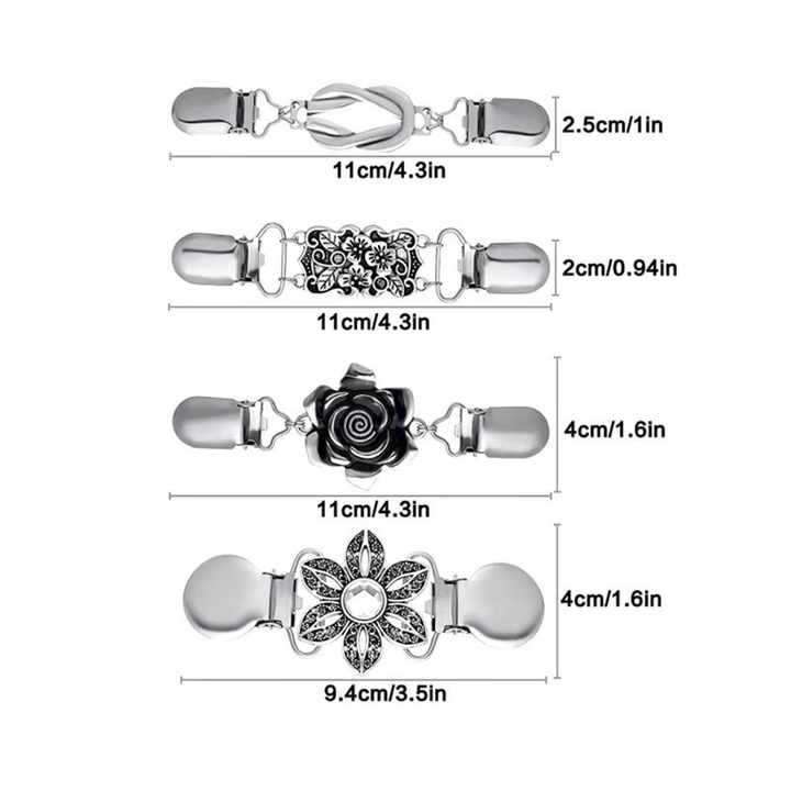 Diese süßen Cardigan Clips bringen vintage Flair in deinen Style! Aus hochwertiger Zinklegierung gefertigt, sind sie robust und liegen trotzdem leicht an. Das ausgehöhlte Design sieht nicht nur edel aus, sondern macht die Clips auch besonders. Einfach an den Kraven deiner Strickjacke, deines Hemdes oder Schals befestigen - schon rutscht nichts mehr von den Schultern! Und das Beste: Die Clips können auch als Brosche getragen werden, also doppelt nutzbar. Im Set bekommst du 2 Paare - ideal zum Kombinieren oder Verschenken. Die silberne Farbe passt zu fast allem und das retro Design ist einfach zeitlos schön. Ob im Office, beim Date oder einfach nur so - diese Teile machen jedes Outfit etwas besonderes. Kein lästiges Zurechtrücken mehr, keine verrutschten Cardigans! Einfach ankleben und den Tag genießen. Die Clips sind übrigens auch super als Geschenk für die beste Freundin oder Mama - stylisch und praktisch zugleich. Hol dir jetzt diesen kleinen Style-Booster und rocke deinen Look!