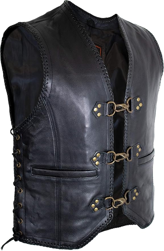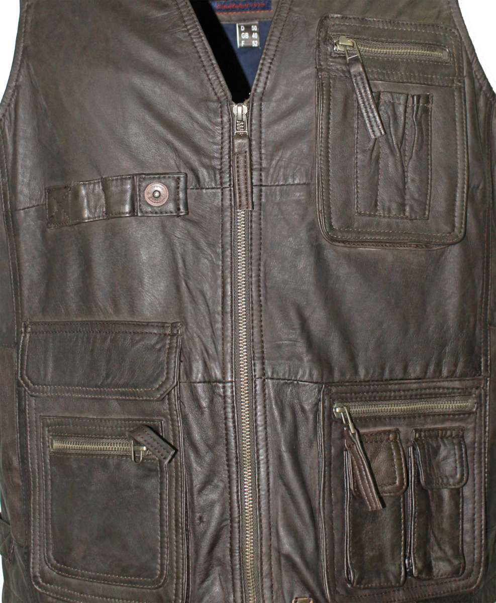 • MDM Herren Lederweste Hunter Club - Echt Rindsleder Mit Croco-Prägung