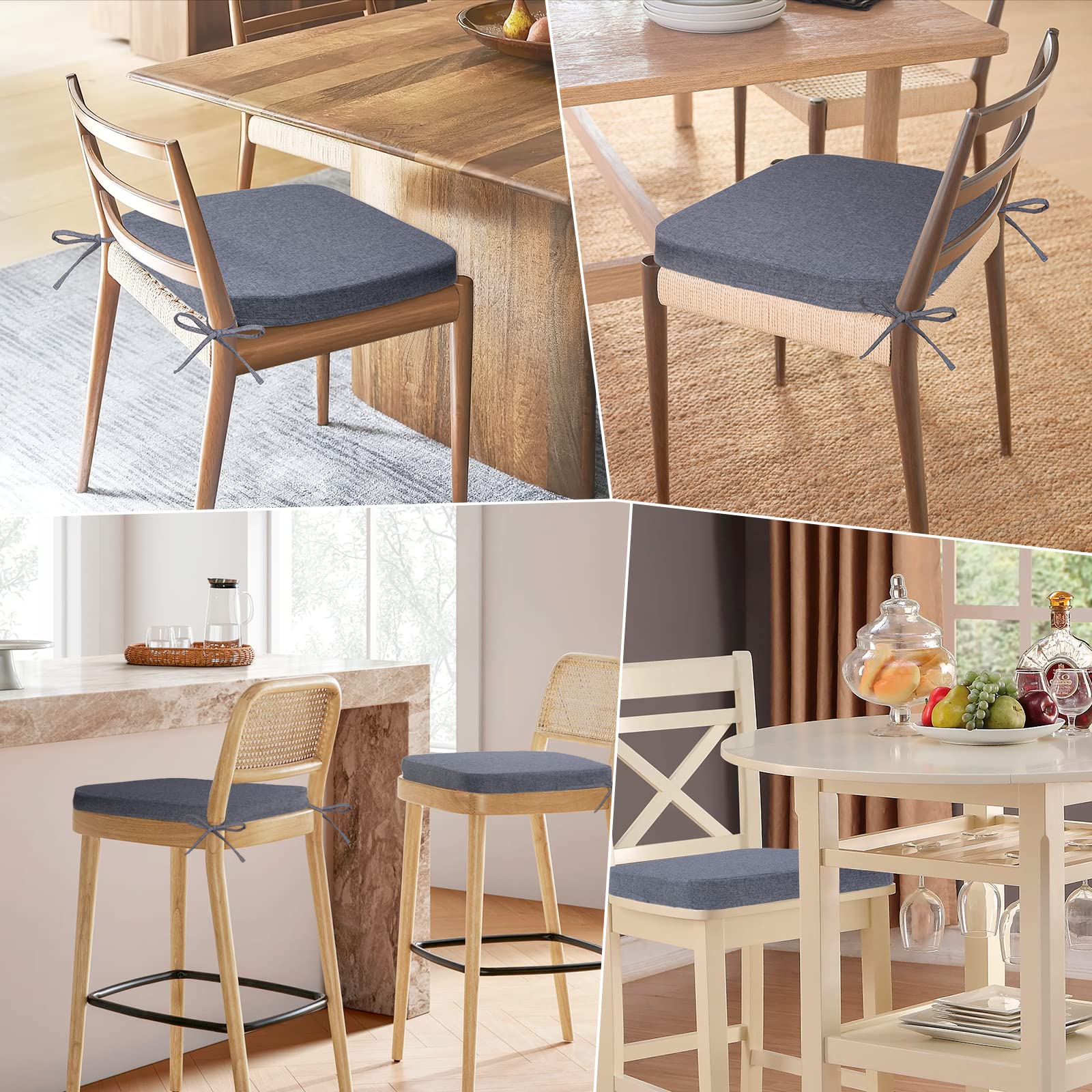 • Mozzeilee Stuhlkissen 4er-Set - Mit Rutschfesten Bändern, 43x41x35 Cm - Baumwoll-Leinen Bezug, Waschbar - Für Küche, Büro, Garten
