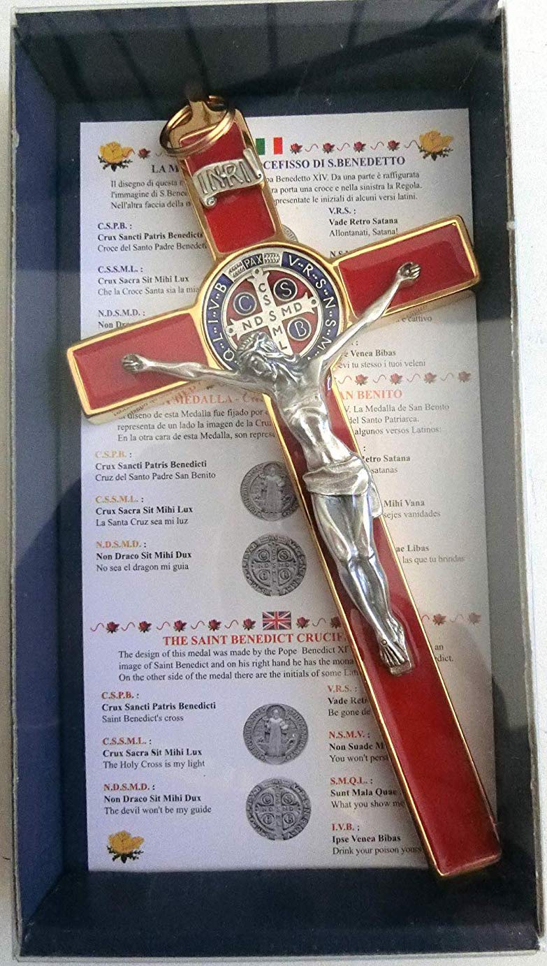 Ein wunderschönes religiöses Kunsthandwerk aus Italien! Dieses 20 cm große Kreuz San Benedetto ist ein echter Hingucker für jede Wand. Handemailliert in edlem Braun und Silber, zeigt es alle Details des berühmten Benediktuskreuzes. Hergestellt in Italien aus hochwertigem Zama-Material, kommt das Kreuz in einer eleganten Geschenkbox - perfekt für Taufe, Kommunion, Konfirmation oder einfach als besonderes Geschenk für liebe Menschen. Ob im Wohnzimmer, Schlafzimmer oder als Segenszeichen im Flur - dieses Kreuz verbreitet eine besondere Atmosphäre des Friedens und der Geborgenheit. Ein Stück italienische Handwerkskunst, das Generationen überdauert und zu einem wertvollen Erbstück werden kann.