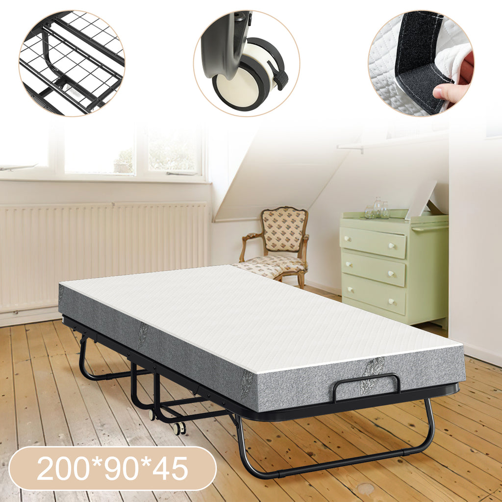 Platzprobleme bei Übernachtungsgästen? Dieses praktische Klappbett von HOMCOM ist die Lösung! Mit 90x200cm Standard-Einzelbettsize und einer dick gepolsterten 10cm Matratze bietet es deinen Gästen einen komfortablen Schlafplatz. Die vier Rollen machen das Verschieben zum Kinderspiel - zwei davon mit Bremsen für sicheren Stand.