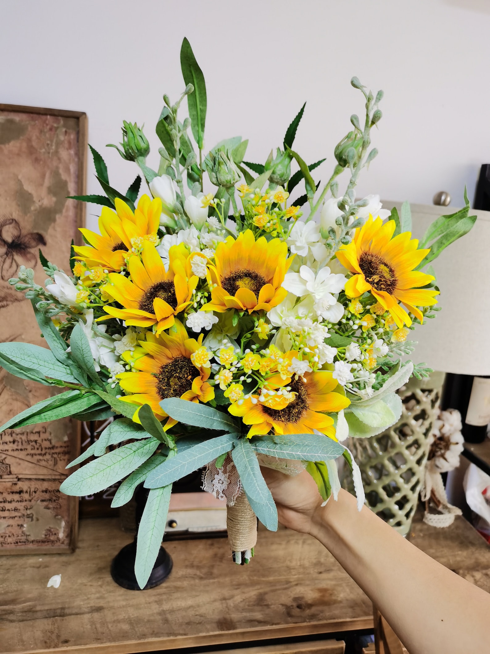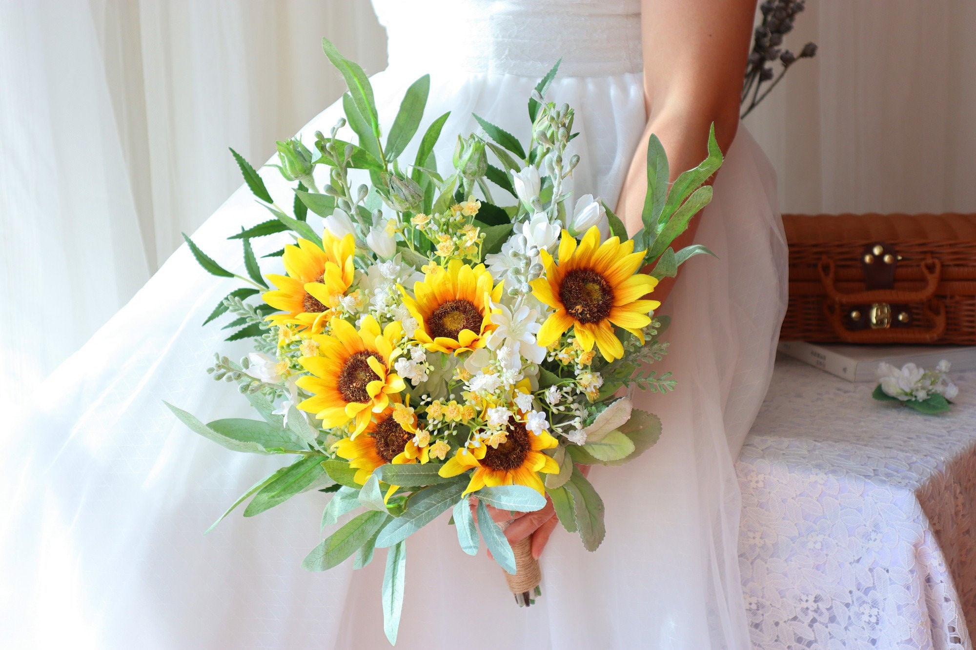 Sommerfeeling das ganze Jahr! Diese künstlichen Sonnenblumen sehen täuschend echt aus - aber ohne welken oder verblassen. Mit 45,7 cm Höhe sind sie perfekt für Vasen und Sträuße. Aus hochwertiger Seide gefertigt, behalten sie ihre strahlend gelbe Farbe für immer. Ideal für alle, die Blumen lieben aber unter Allergien leiden. Ob auf dem Esstisch, für die Hochzeitstafel oder im Büro - diese Sonnenblumen bringen sofort gute Laune. Auch draußen auf der Terrasse machen sie eine gute Figur. Einfach in die Vase stellen und sich über den eternalen Sommer freuen!