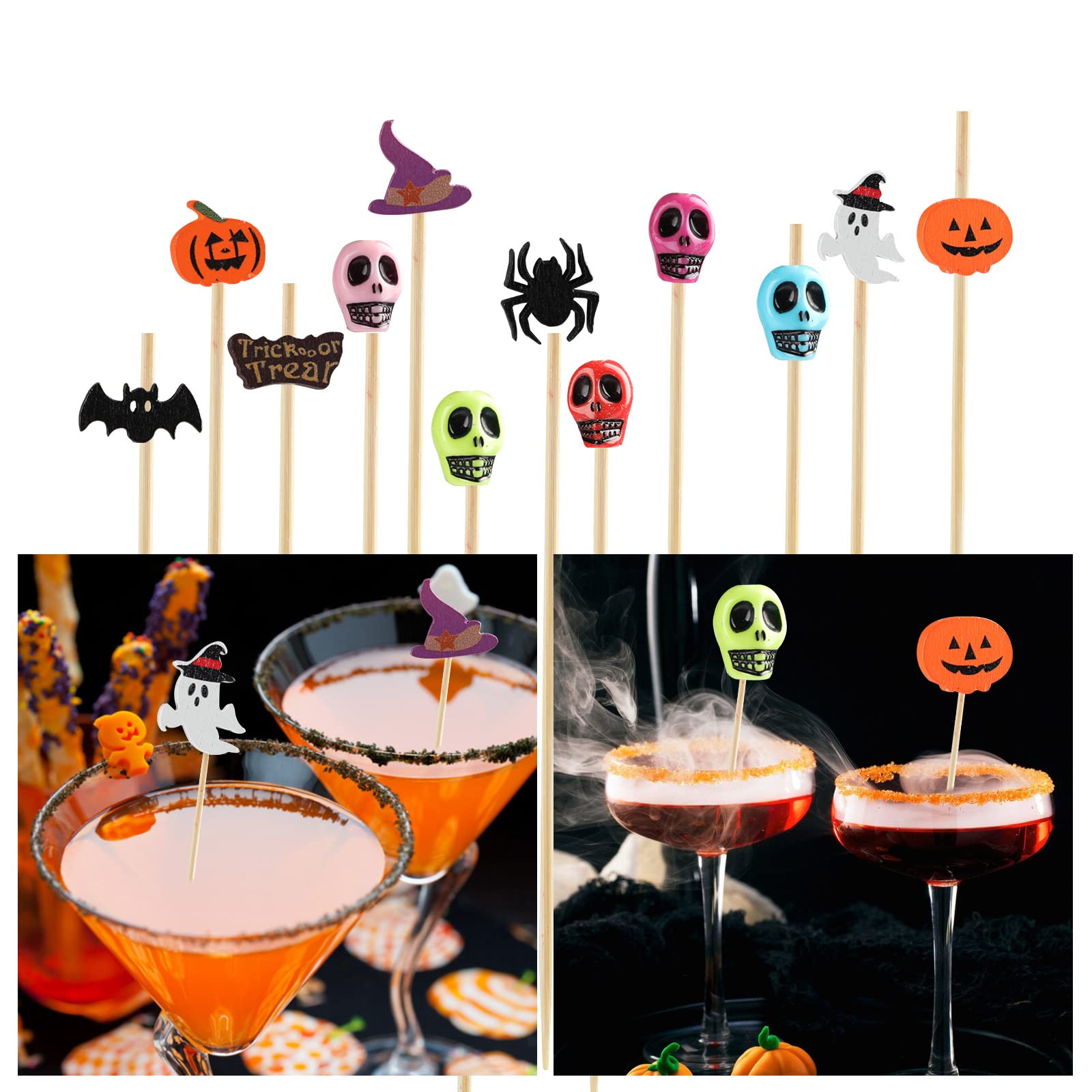 Mach deine Halloween-Party unvergesslich mit diesen 150 lustigen Cocktailspießen! Im Set sind je 50 Stück mit Kürbis-, Fledermaus- und Totenkopf-Motiven - perfekt für die Grusel-Stimmung. Aus natürlichem Holz gefertigt, sind die 12 cm langen Spieße absolut sicher und haben keine scharfen Kanten. Ideal für Fingerfood, Obstspieße, Mini-Burger, Käsehäppchen oder Cocktails. Die schwarz-orange-weiße Farbkombination sorgt für echte Halloween-Atmosphäre auf deinem Buffet-Tisch. Einfach die Leckereien aufspießen und deine Gäste werden begeistert sein! Super praktisch für Partys, denn so müssen keine Finger in das Essen - hygienisch und dekorativ zugleich.
