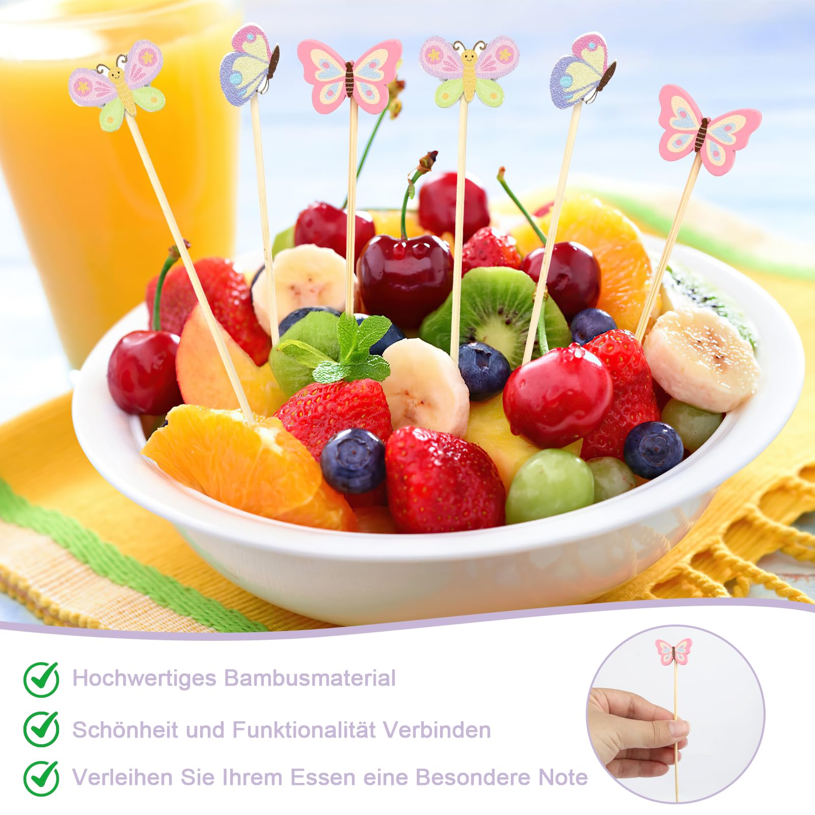 Mach deine nächste Party zum absoluten Hingucker! Mit diesen 100 wiederverwendbaren Cocktailspießen in zwei stylischen Designs (Sommer und Feuerwerk) wird jedes Getränk und jeder Snack zum Eyecatcher. Perfekt für Oliven, Kirschen, Ananas-Stücke oder kleine Käsewürfel. Die bunten Bambus-Spieße sind nicht nur dekorativ, sondern auch praktisch und regen den Appetit an. Ideal für Geburtstage, Hochzeiten, Gartenpartys, Barbecues oder Cocktail-Abende. Aus natürlichem Bambus gefertigt - bitte von Feuer fernhalten und trocken lagern. Ein Must-have für jeden Party-Veranstalter! Deine Gäste werden begeistert sein.