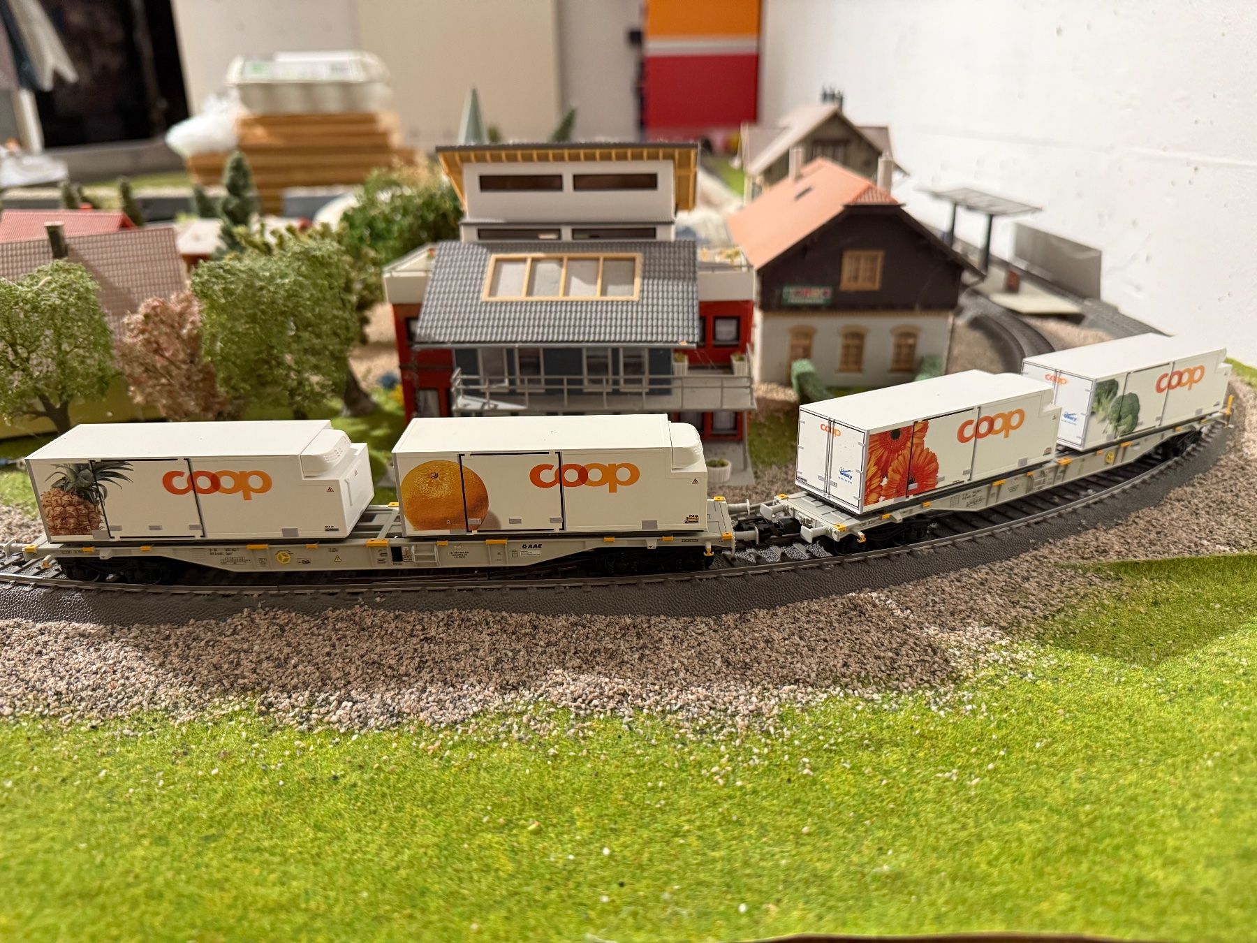 Für alle Modelleisenbahn-Fans, die was für ihren Güterverkehr suchen! Dieses super detaillierte 2er-Set von Märklin zeigt zwei vierachsige Containertragwagen der Bauart Sgns 19 von AAE, wie sie um 2015 unterwegs waren. Die Wagen sind schon beladen mit nem 40 ft Container von Lloyd Triestino und zwei 20 ft Containern von Italia - sieht einfach mega authentisch aus! Perfekt für deine H0-Anlage, ob du jetzt ne moderne Güterzug-Komposition zusammenstellen willst oder einfach nur deinem Bahnhof mehr Leben einhauchen möchtest. Die Qualität ist wie immer bei Märklin absolut top, von der Lackierung bis zu den kleinen Details. Einfach auspacken, auf die Schienen stellen und dich an nem richtig realistischen Güterverkehr erfreuen. Egal ob du Sammler bist oder einfach nur deine Anlage erweitern willst - mit diesen Containertragwagen machst du garantiert nichts falsch!