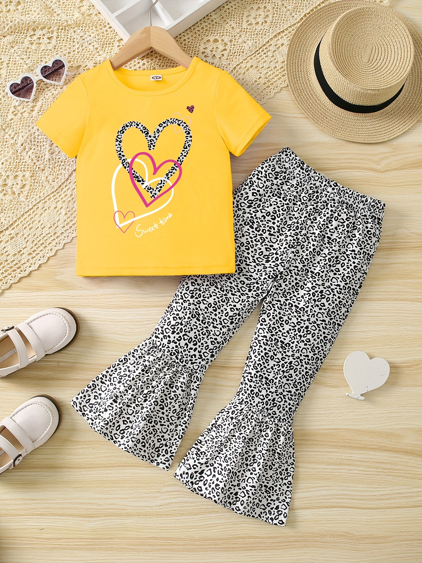 Total lässiges Outfit für coole Mädels! Dieses bezaubernde 2-teilige Set besteht aus einem weichen Cord-Langarmshirt und einer trendigen Schlaghose. Mit kariertem Leopardenmuster - voll im Trend. Das Shirt hat einen bequemen Rundhalsausschnitt und stylische Mesh-Einsätze an den Ärmeln. Die Hose mit ausgestelltem Schnitt und elastischem Bund sitzt perfekt. Aus hautfreundlichen, dehnbaren Materialien - super bequem für aktive Kinder. Maschinenwaschbar und pflegeleicht. Wichtig: Größe fällt kleiner aus, also besser 1-2 Größen größer bestellen! Perfekt für Schule, Spielplatz, Festivals oder einfach zum Relaxen. Macht das Anziehen morgens super einfach - kein langes Kombinieren mehr. Deine Tochter wird dieses stylische Set lieben und sich darin pudelwohl fühlen. Ideal für Herbst und Winter!